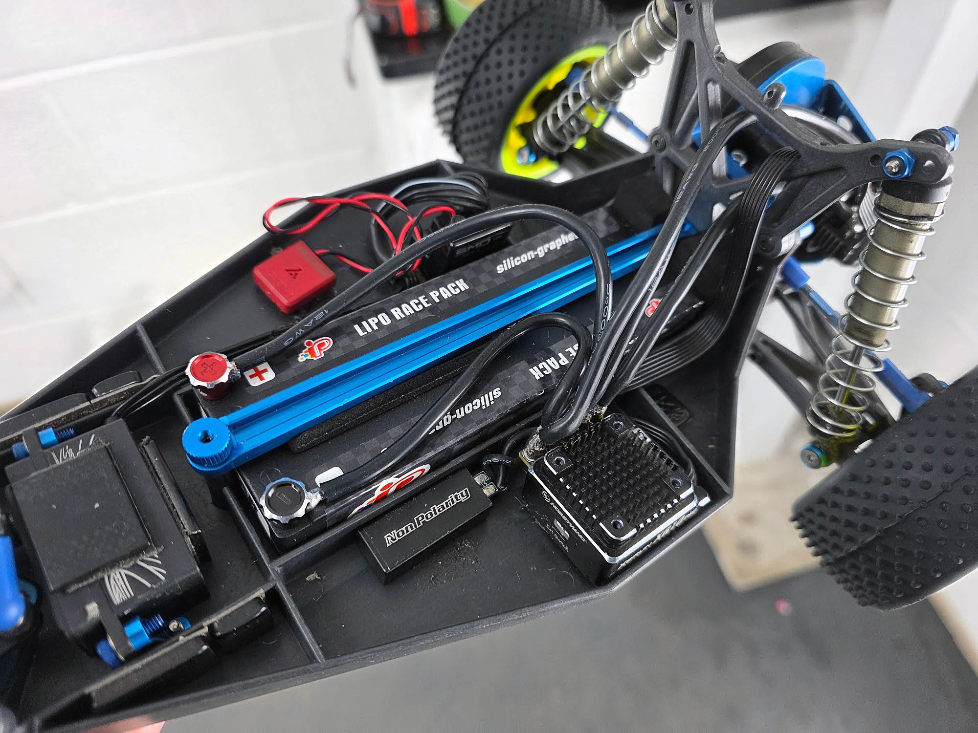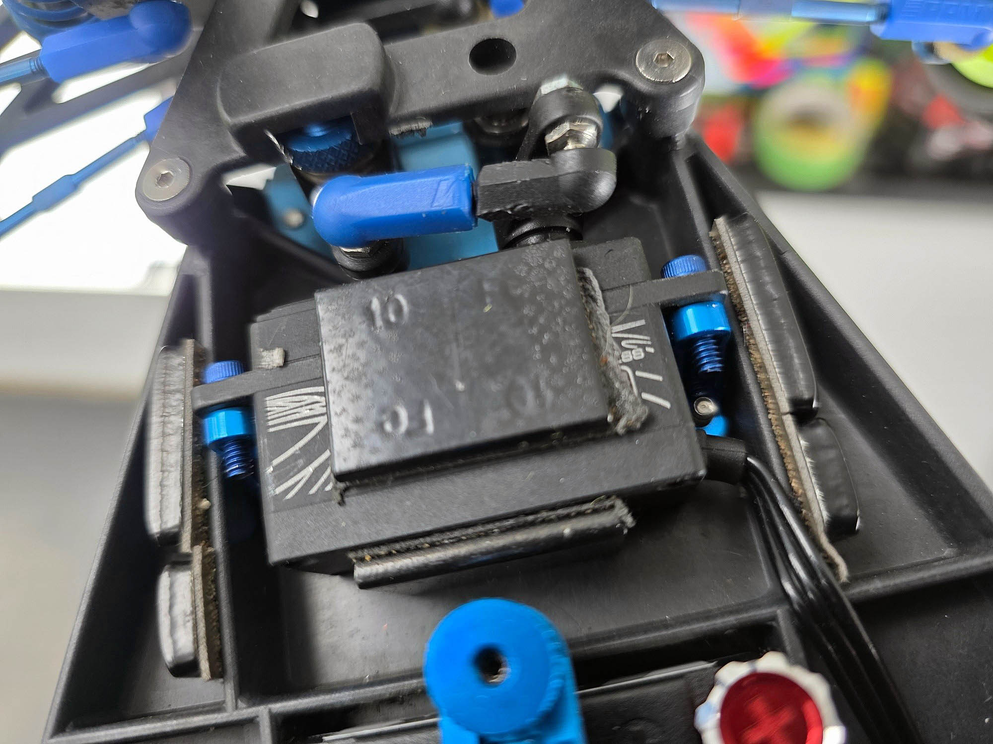 Full stick pack Intellect 5900 and 50g weight stuck in the car mainly around the servo and 10g around the back corner of the chassis.