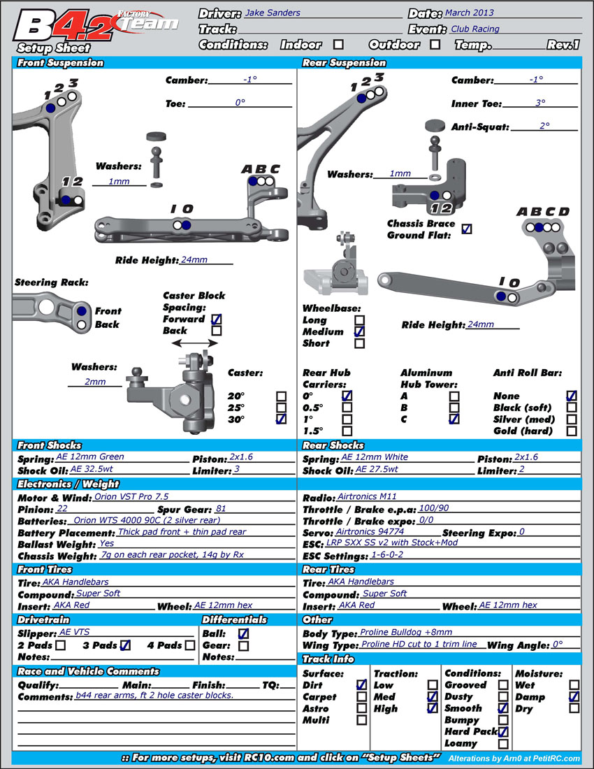 - Team Associated B4.2 - Jake Sanders - Base Setup - March 2013 -