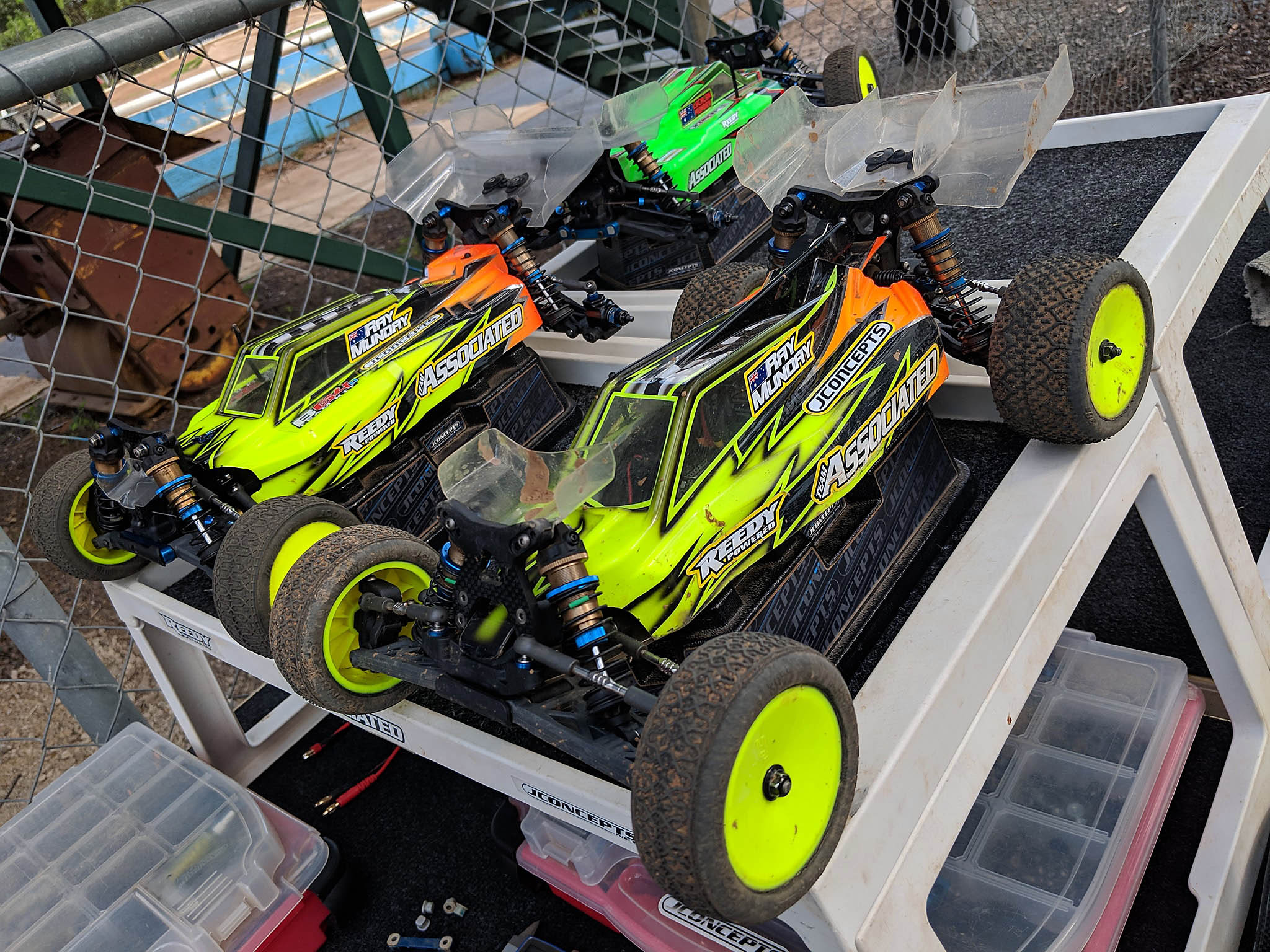 Did some testing over the last few days at my local track, which is much lower grip / sandier than usual thanks to recent heavy rains. I've kept the 3gear standup / shock forward configuration for increased corner speed and worked on getting more drive out of corners with the rear end setup.