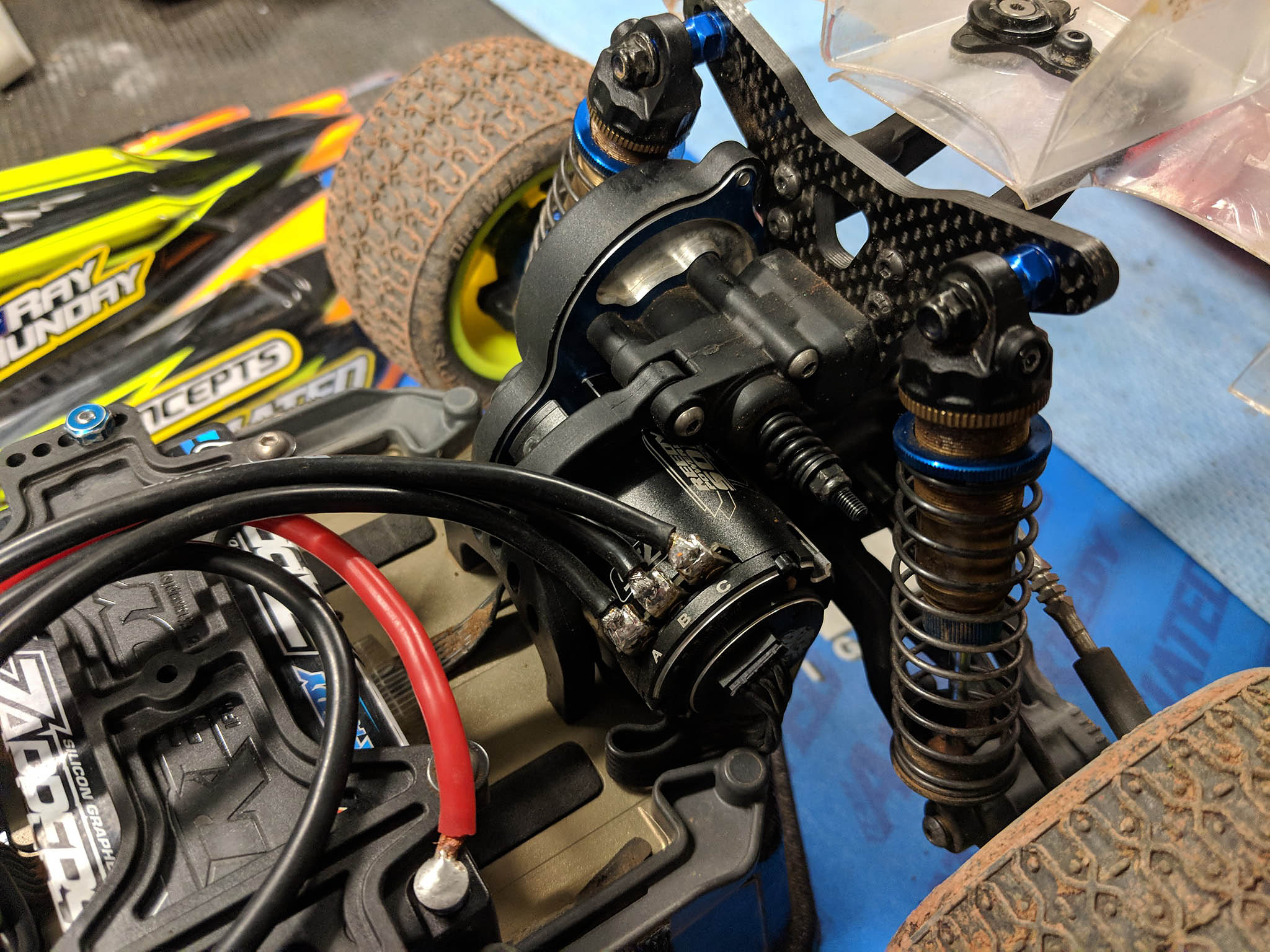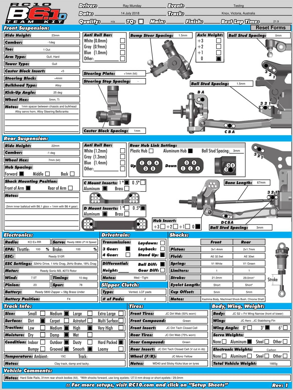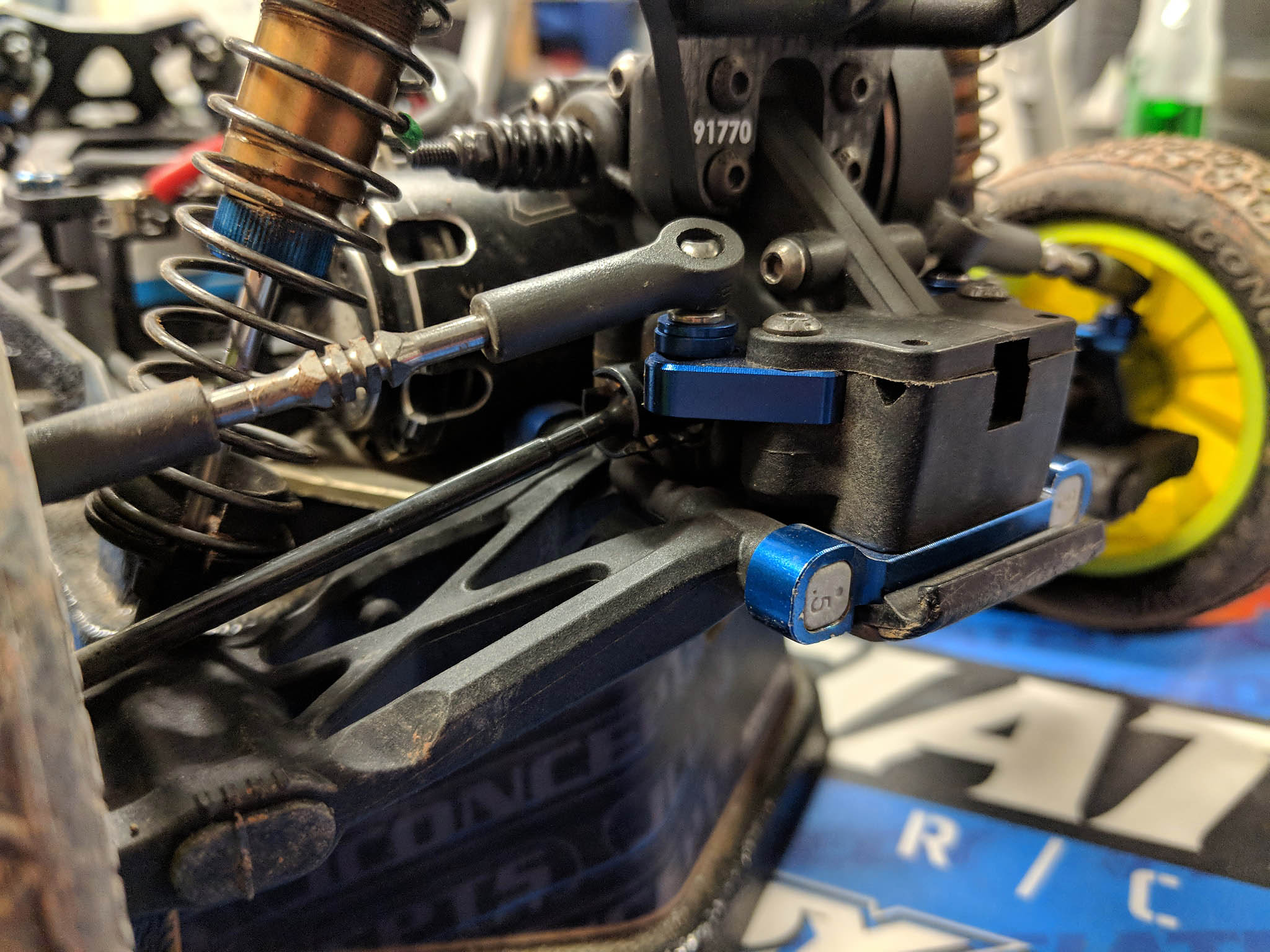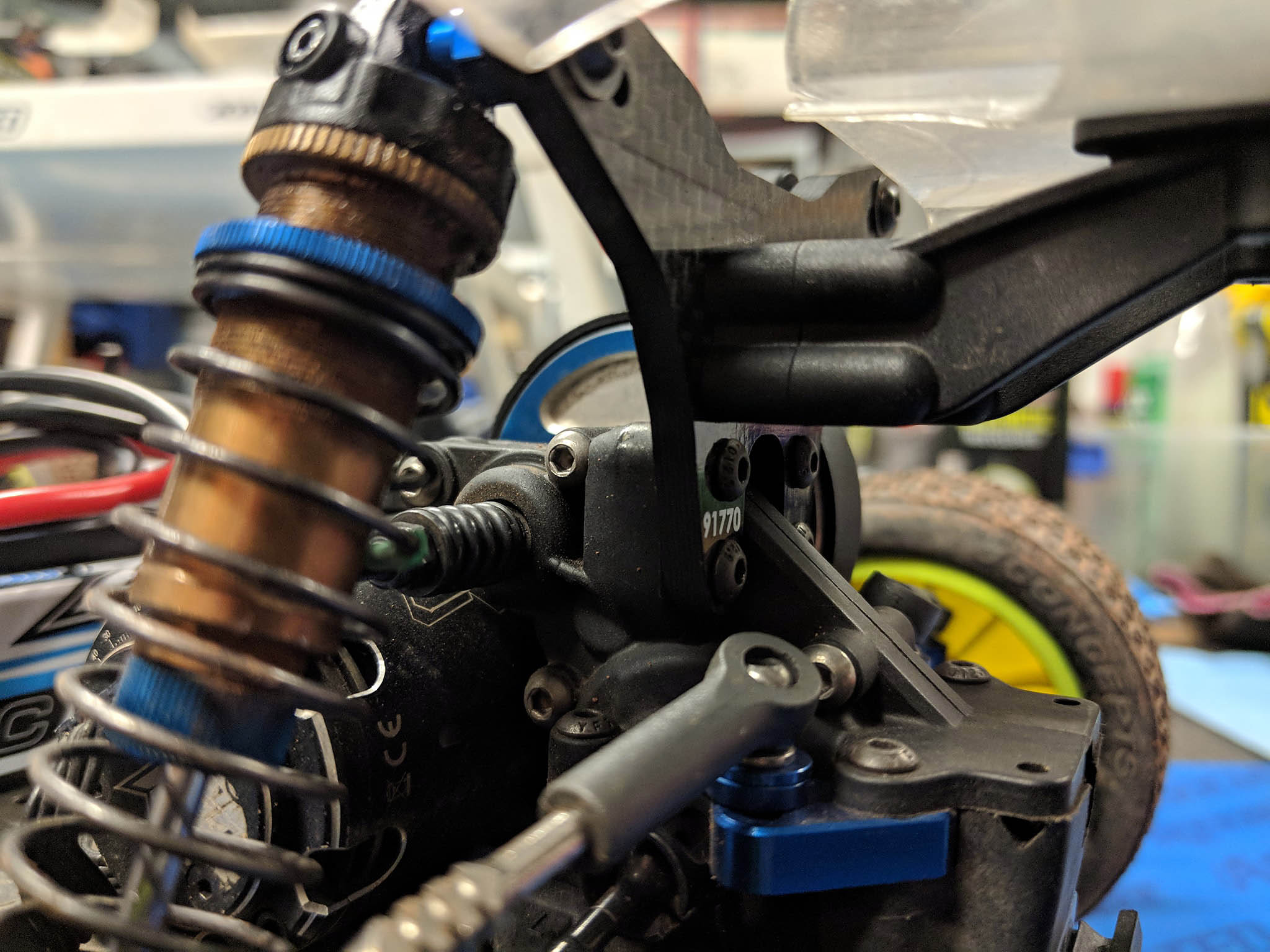 The layback is the next step to try. Ive run it before but on a looser track. I check weight bias with corner scales and this setup is a similar bias to layback with brass c and d and shocks rear. The extra versatility of the b6.1 standup is nice for outdoor dirt racers instead of changing transmission. A lot of our stock racers like the corner speed of layback but in mod power down is much better with standup