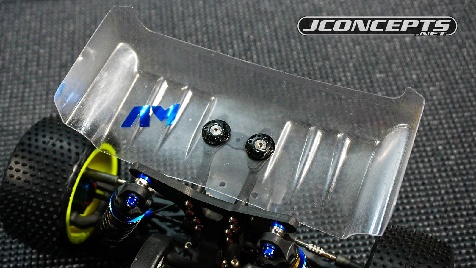 At the Super Cup, the JConcepts crew tested out a new wing that is currently referred to as the "High Traction Wing" in-house. Designed for ultra-low ride heights, G'd out turns, the High Traction Wing incorporates a position, rake angle, and side dams that don't rub on the tire. There are a few new 'Speed ribbings' that not only strengthen the wing for durability but also channels the air straighter over the wing for improved flow and effeciency. More info on the new prototype to come.