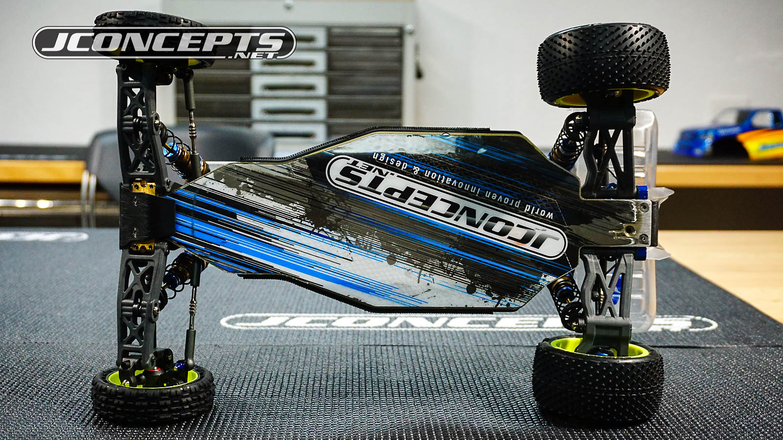 Also from the top picture, you can see the classic JConcepts Fin titanium turnbuckles on AJ's 2wd shaving unwanted grams while increasing durability over the standard steel/chromoly pieces.