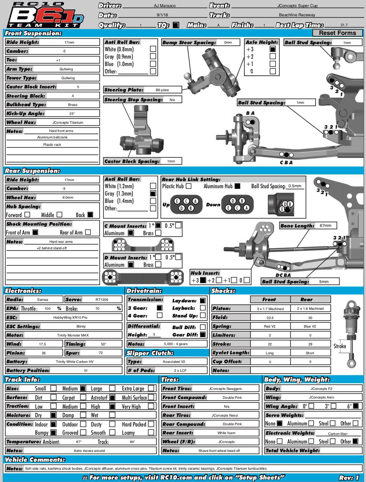 Under the direct guidance of JConcepts' Paul Wynn, Jason Ruona, and also from Trinity's Kevin Abbott, AJ has been able to find a lot of success in the uber-popular, highly competitive 17.5 2wd class. Here's a closer look at AJ's Beachline turf slaying 2wd and what makes it so fast besides the talent behind the wheel.