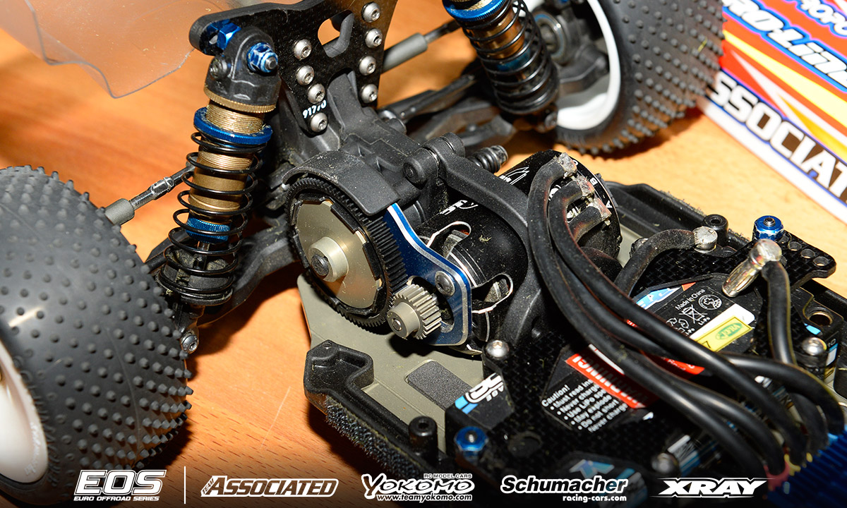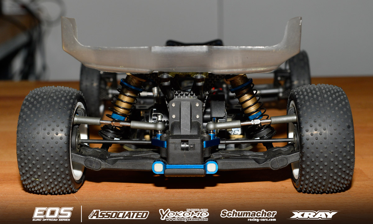 Remarks: The only title contender to Orlowski coming into the final stage of the EOS, Neil Cragg came to Arena33 well prepared for what would be the surface he is most used to. His RC10 B6.1 is equipped with front gullwing arms and corresponding shock tower, tall rear shock bodies and tower, soft rear arms and the new Team Associated V2 springs in order to cope with the bumps on the astro track. He was also using a ball differential and a brass bulkhead, 67mm rear driveshafts & hubs and a front Pro-Line wing.