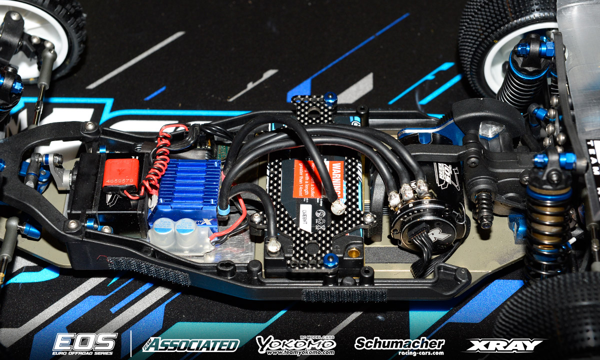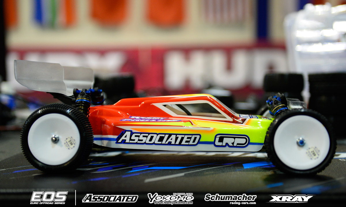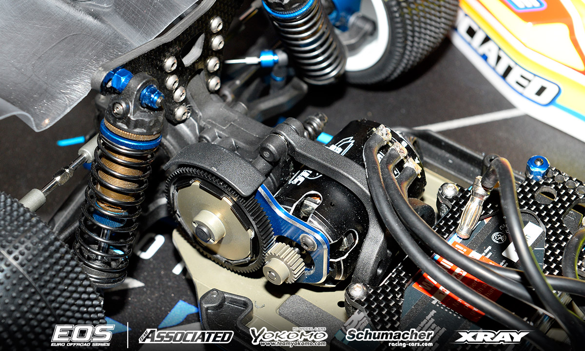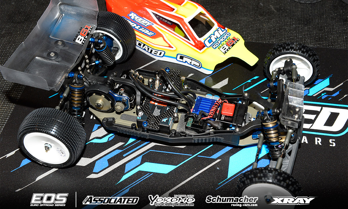 Chassis: Team Associated RC10B6.1 Motor: Reedy Sonic 6.5T ESC: LRP Flow X Batteries: Reedy 4000mAh Radio/Servo: KO/Reedy Tires: Schumacher (handout) Body: Kit Remarks - Winner of the last EOS encounter in Daun, Neil Cragg is debuting Team Associated's RC10B6.1 Buggy. The new car features an updated gearbox that allows a differential height adjustment and makes maintenance easier thanks to quicker diff access. The chassis is some 2mm shorter than the previous version and the front shock tower has also been updated. Neil is using a complete aluminium steering system, aluminium uprights and 67mm driveshafts. A Pro-Line front wing and steel chassis weight complete the option part list.