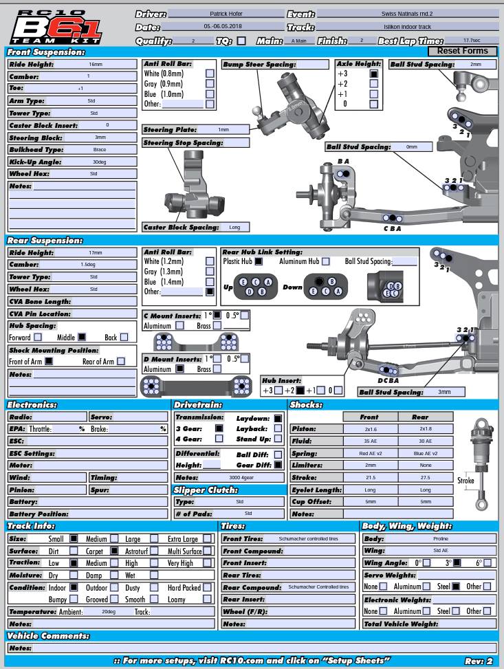 My fresh #b6.1 was very easy to drive in practice and also in the Qualis but I do to much little mistake, so I end up on the Second position. in the Finals I do all what I can to go in front, but had good and clean fights with Nico but made the first Finals in front of me. Second Final Nico made a Mistake and I can move in front for the first place and bring it also at one in this finals. 3 round and also the Final round was the fight on, I was always on his heck but on the small Track I found no space the catch him, so I finished on a solid 2. Place good points for the saison. |