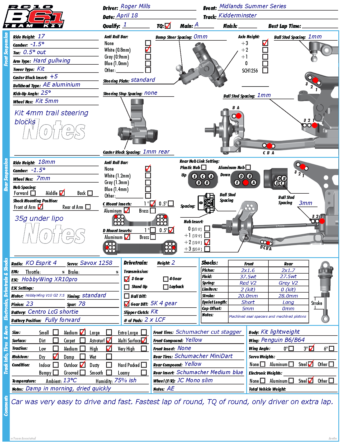 First competitive meeting with the cars I got to use both due to very changeable weather conditions.