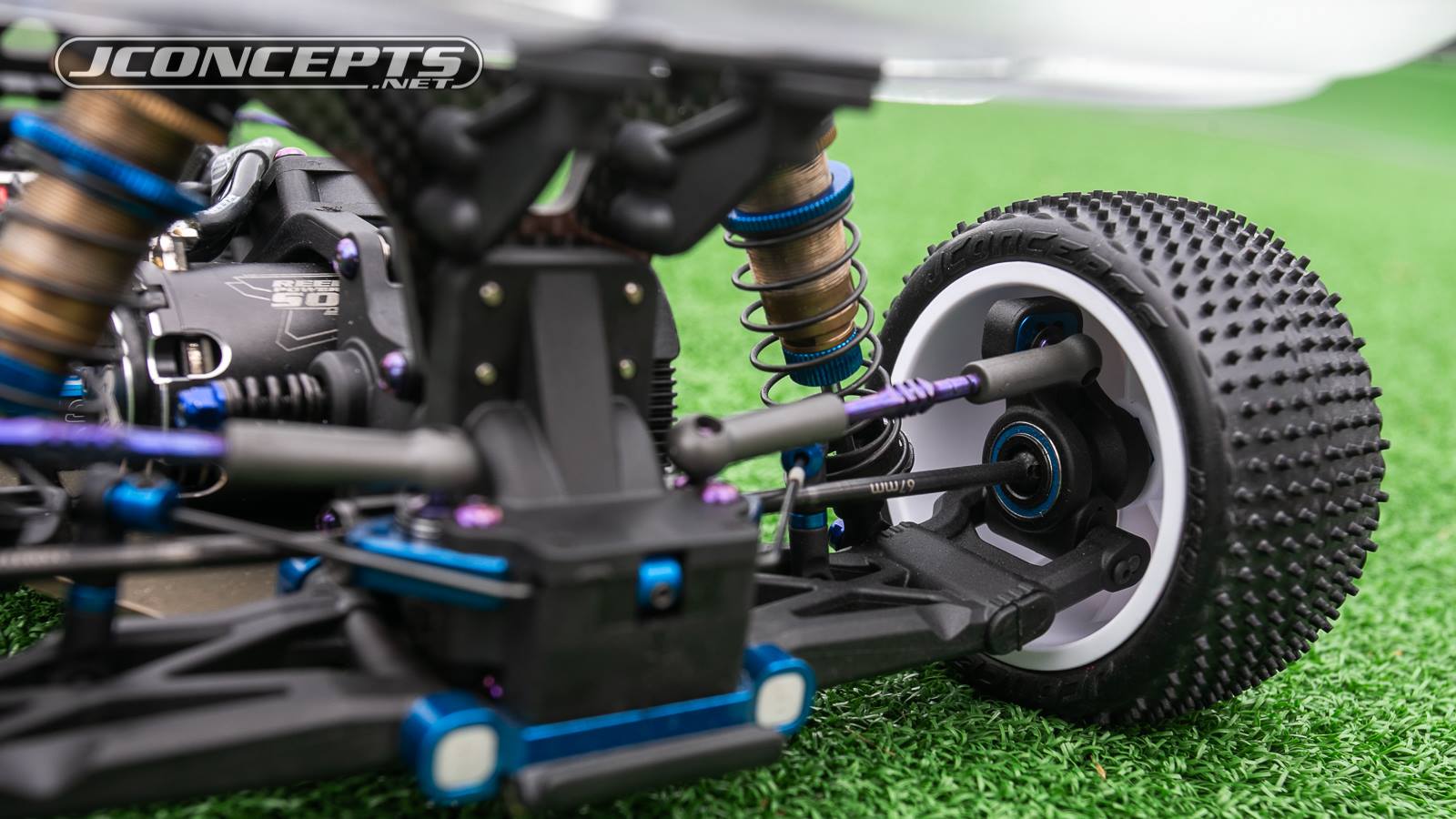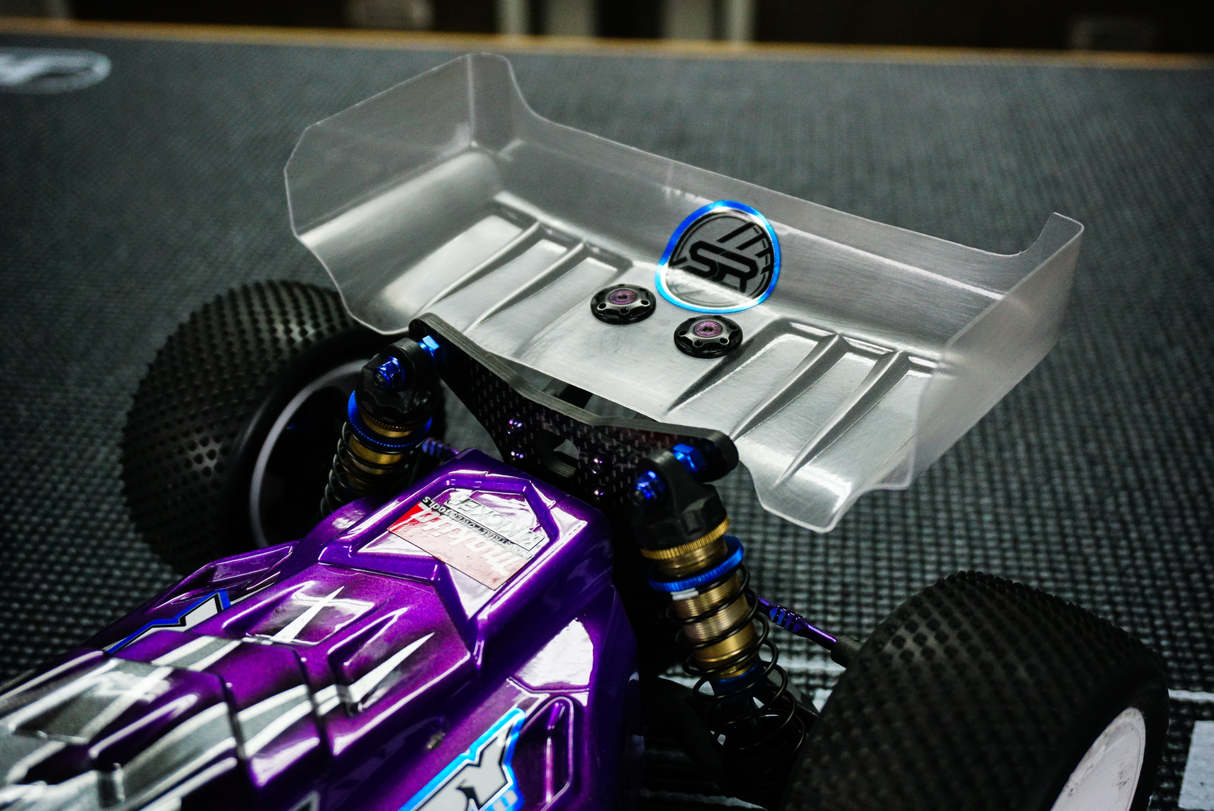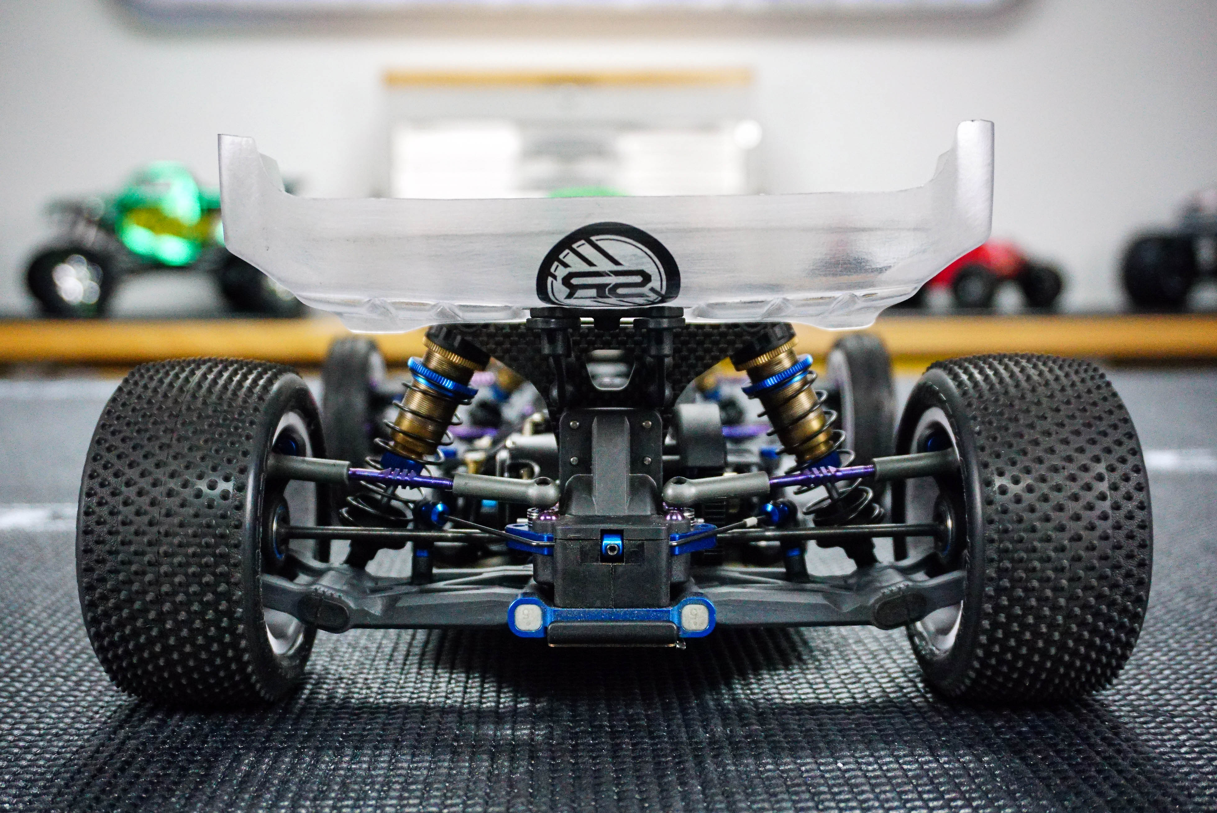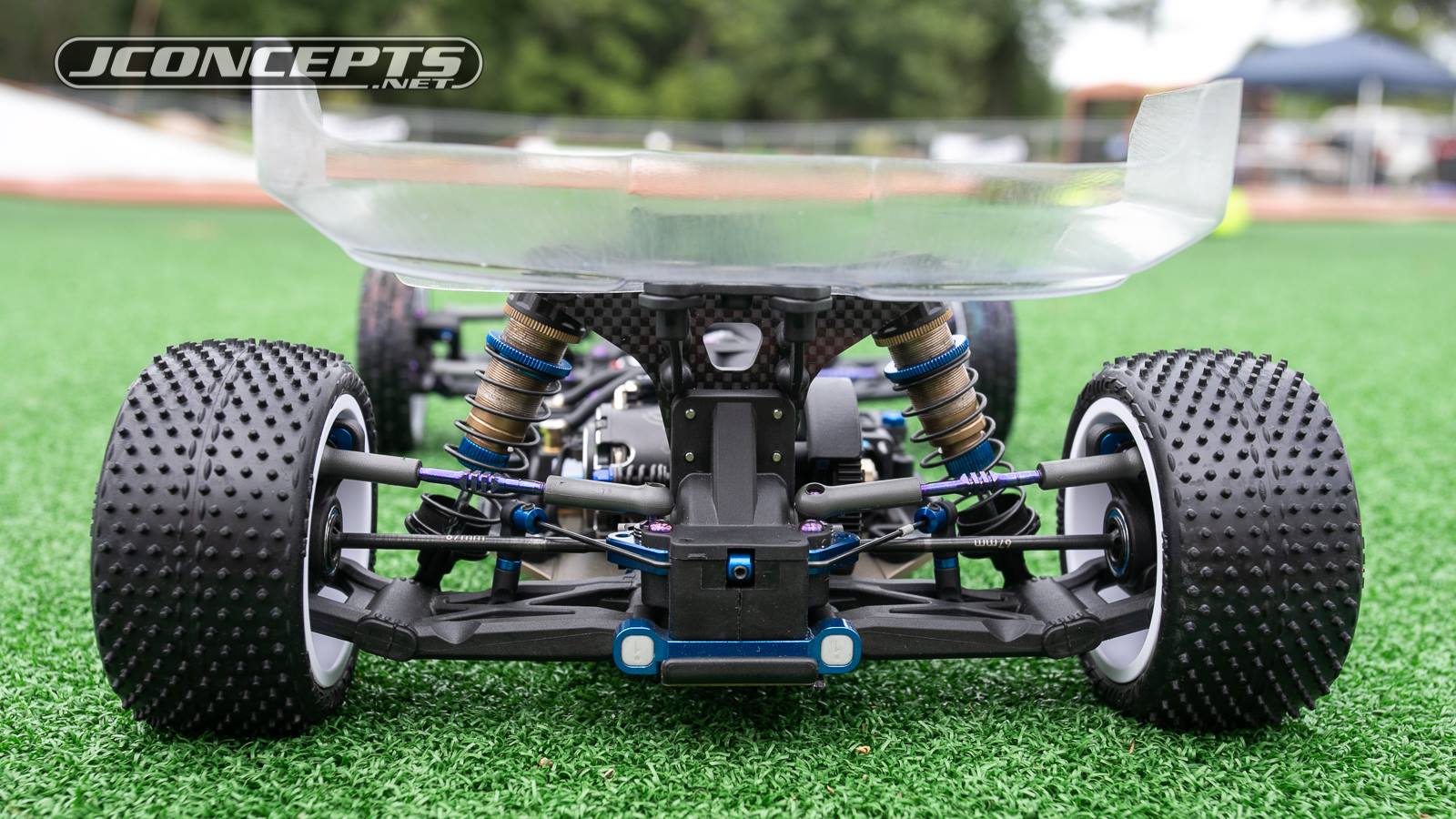 With the spec tire being JConcepts Swaggers and Pin Downs, Slim Mono Front wheels and Mono rear wheels provides a stiff foundation and easy gluing. Opting to go with the Low Mount Aero Wing to control the front, Spencer ran the new prototype "High-Traction Wing" on the rear of the car.