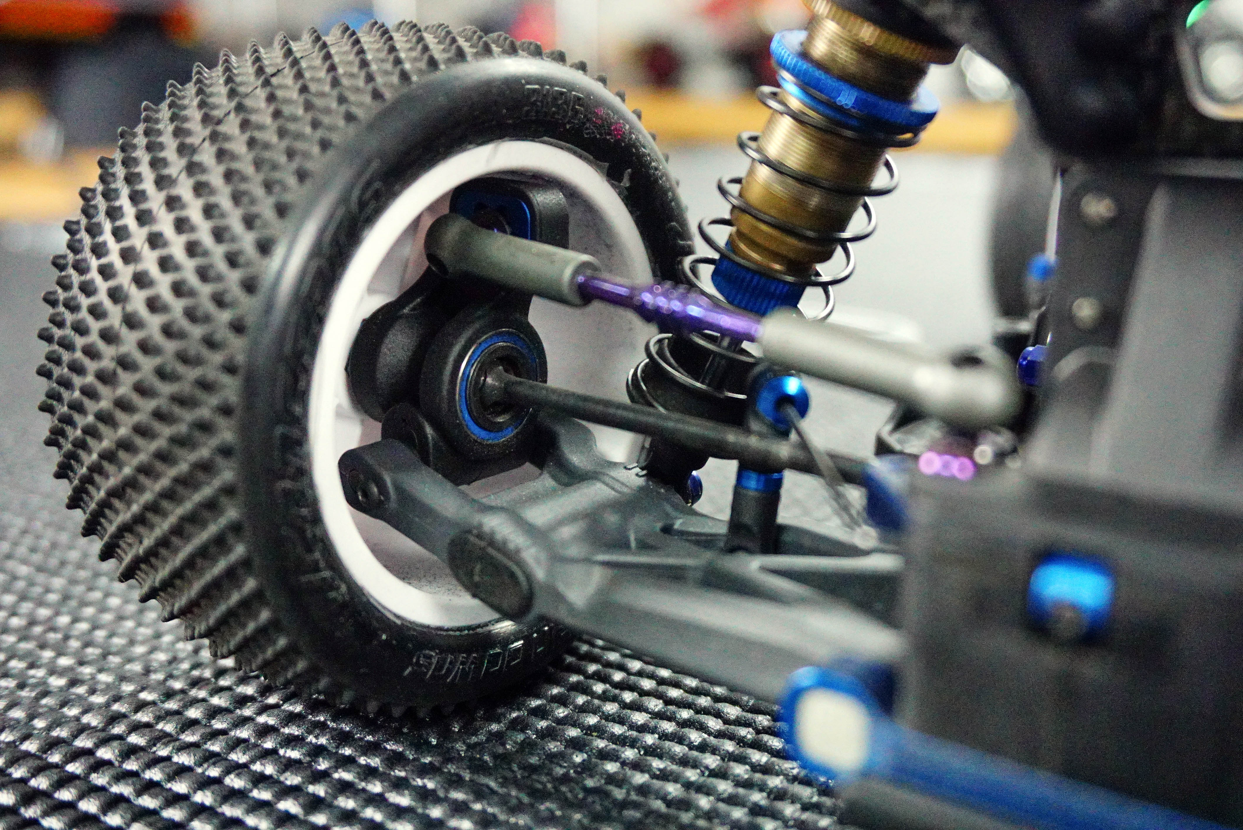 You would think that Spencer would use the aluminum hub option because of the extra grip, but you can see the plastic hubs on his car set to the higher position.