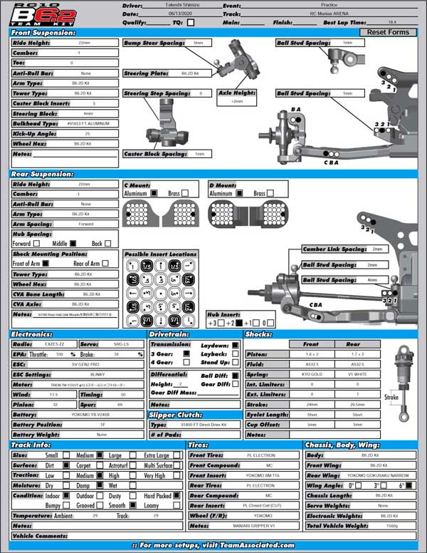This is the setting sheet for Associate B6.2D as of June 14. 17.5 stock.