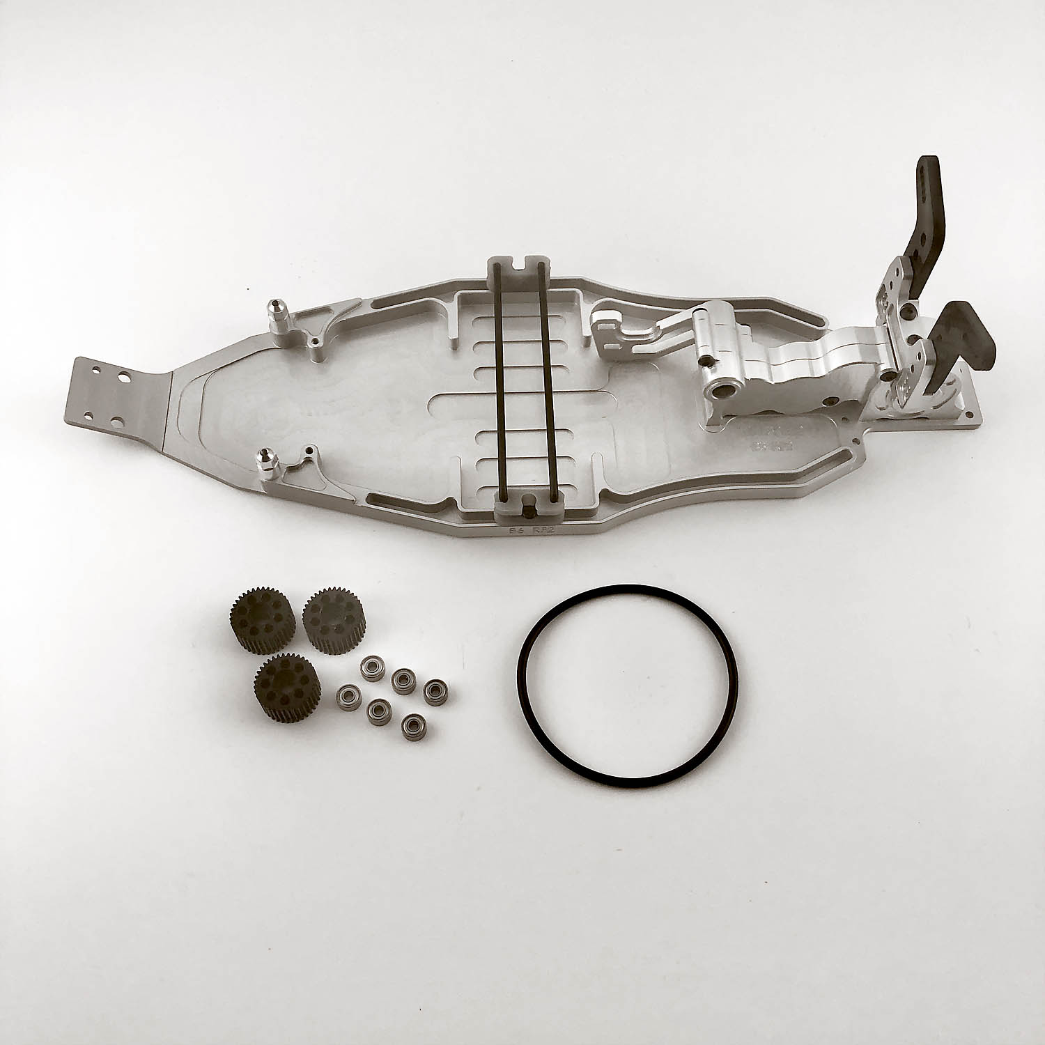 The RF2 design focus's on moving the weight bias forwards by utilising a 5 gear transmission - this allows the motor position to be moved further forwards creating a smaller located area of main mass which aids to control weight transfer.