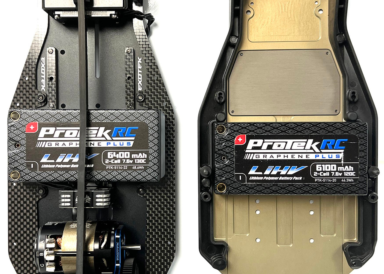 And because all carpet tracks are not the same, the battery position is modular to allow for max forward to mid forward battery weight positioning. The inline positioning also can be easily moved forward or back thanks to the adjustable locking lipo slider system.