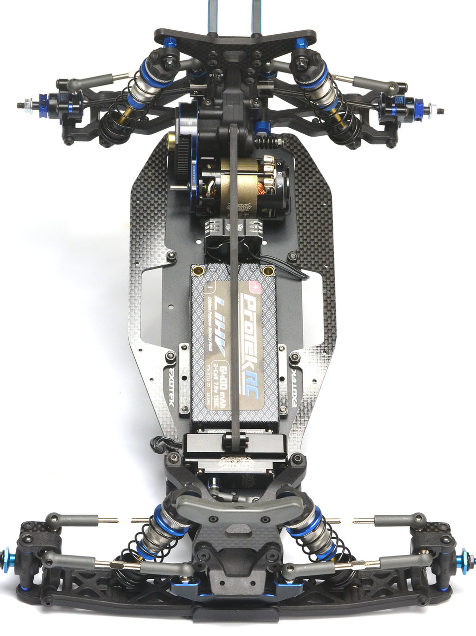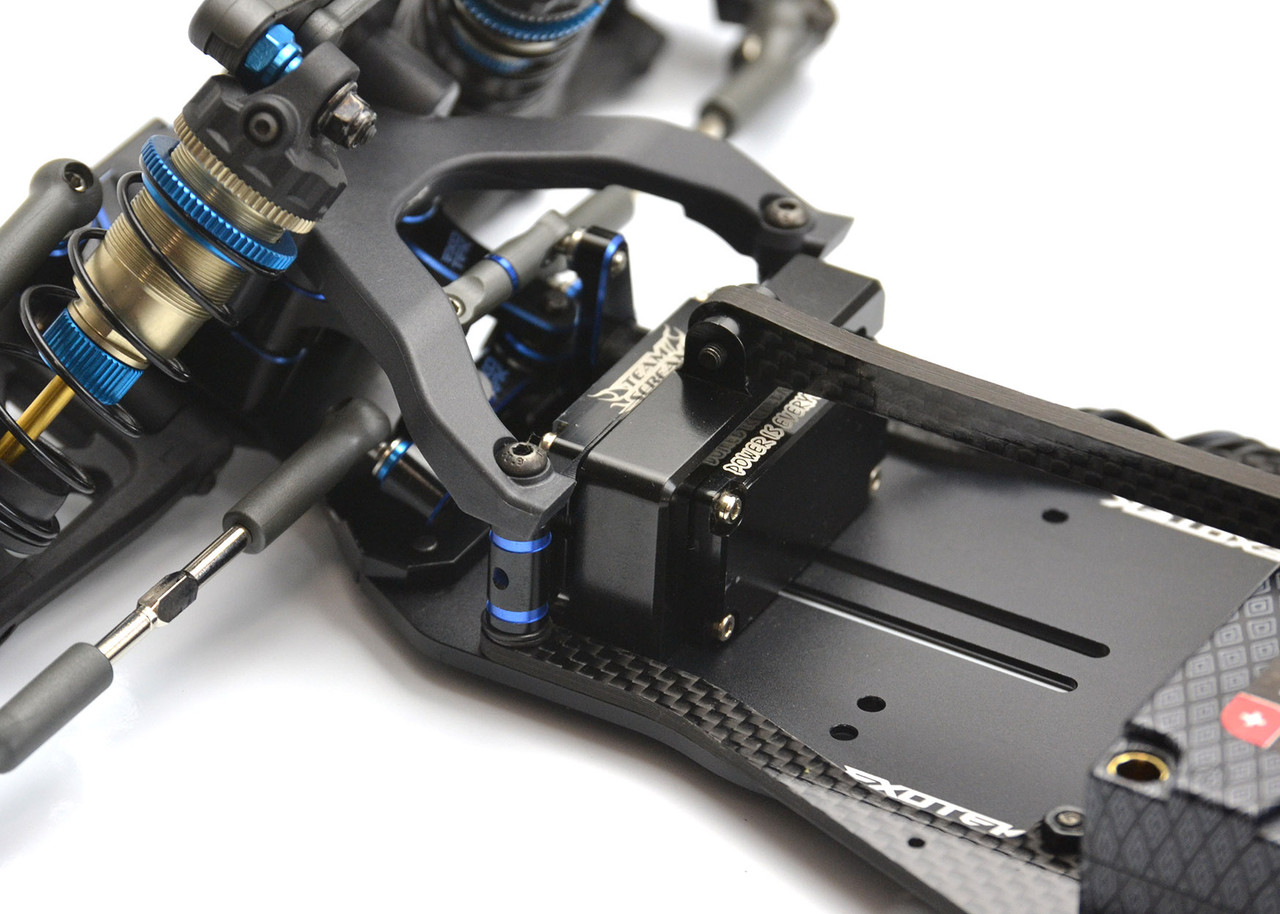 Co-developed with John, Exotek Racing brings to you the next evolution of carpet chassis that has been quietly dominating a few East Coast tracks. This chassis is optimized for maximum corner speed with the battery forward weight bias and super low center of gravity design.