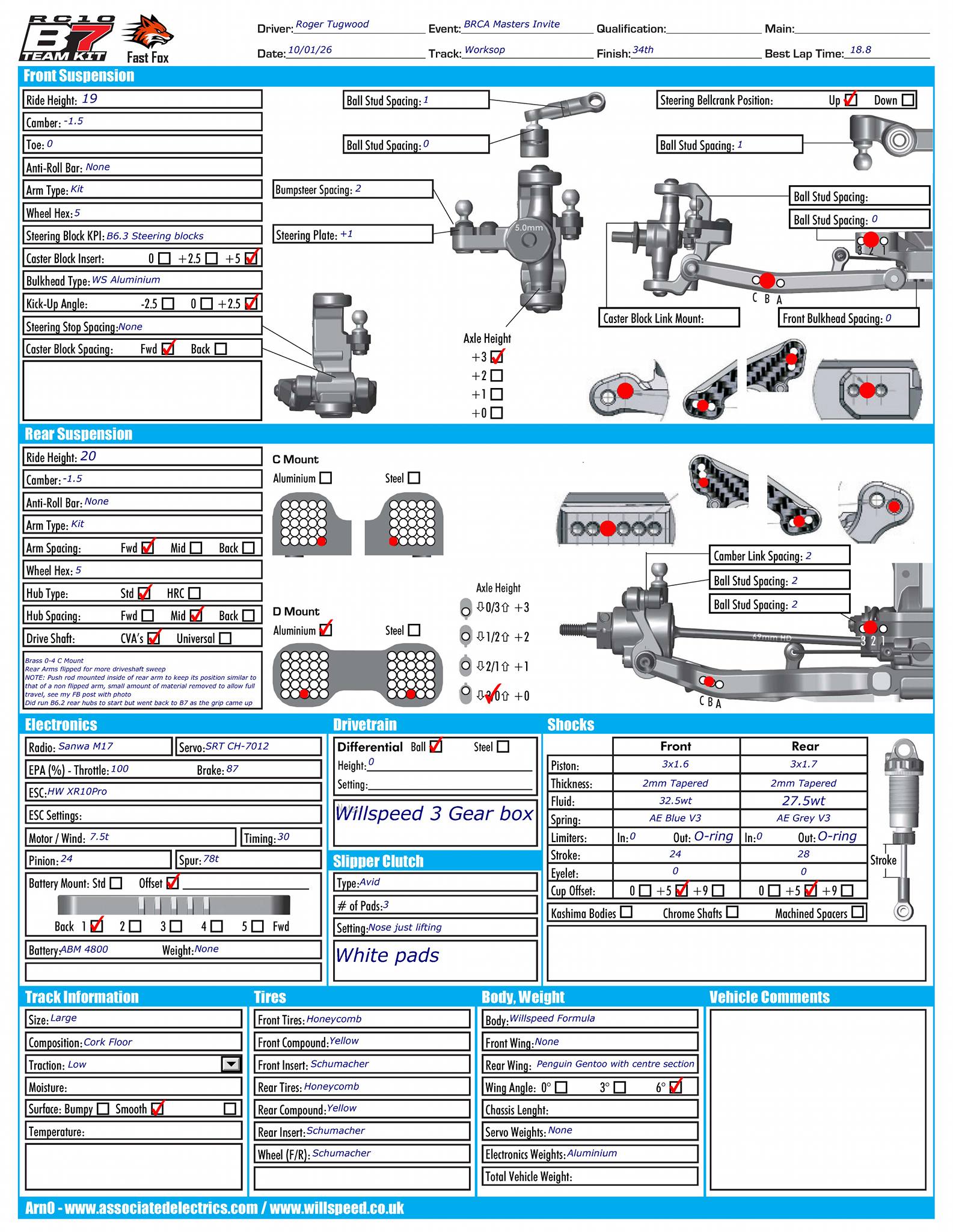 First race meeting with the Fast Fox and it was a solid starting point straight away. A few small changes throughout the day and this is the setup I finished with 📝 There's plenty more to come from this platform as we work through suspension options but the feeling I had with the car showed great promise.