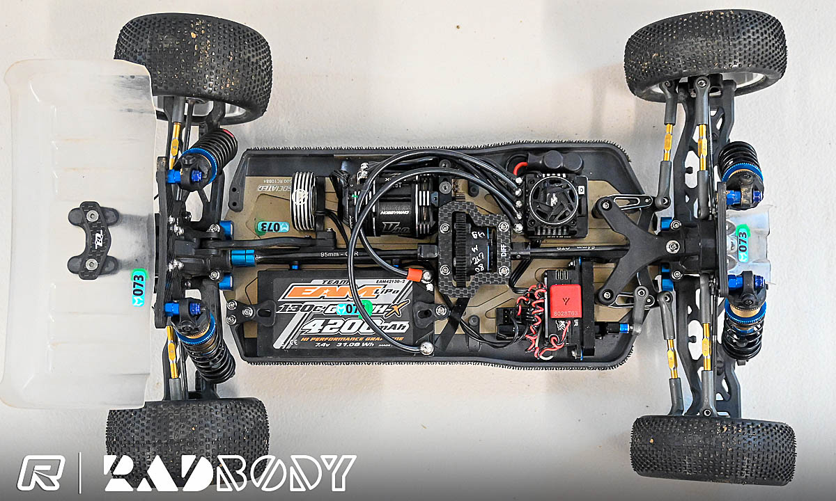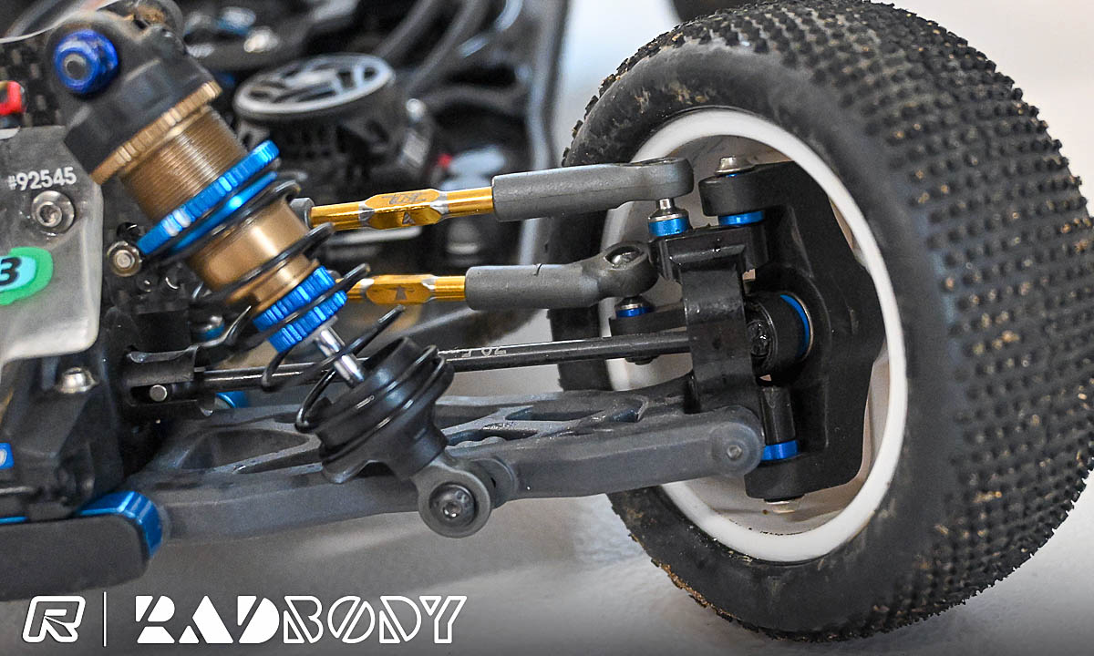 Marcus' 84D is running a Revolution Design Bellcrank Set on his B84D along with a Revolution Design Marcus Kaerup Edition Ultra Titanium Turnbuckle Set.