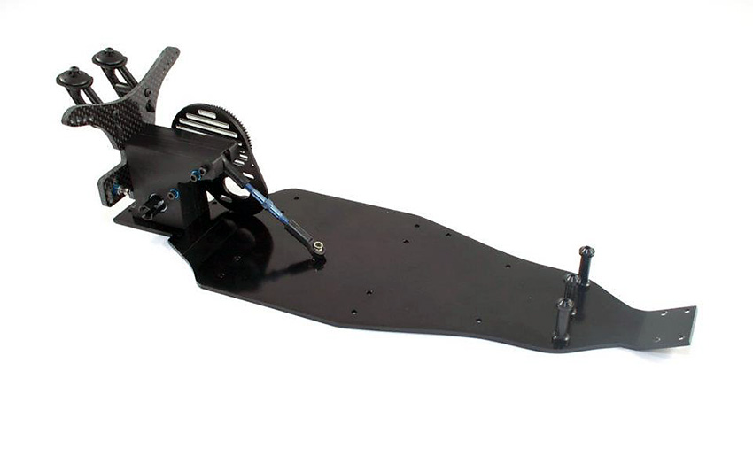Using an ultra slim black anodised chassis for saddle pack or ‘shorty’ Li-po cells, the C4.1 utilizes the race proven B4.1 suspension components and geometry to tame any track. The gearbox has four internal gears to maximise the mid-motor configuration, with the casing itself machined from delrin. The custom made rear hinge-pin mounts have the option of one or two degrees anti-squat.