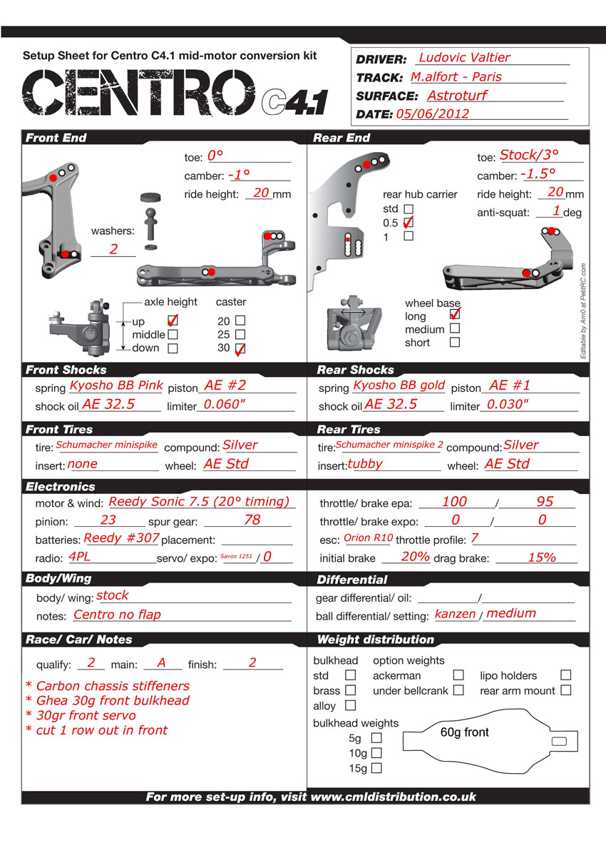 Track condition: slippery, wet Setup based on Paul Bradby's one