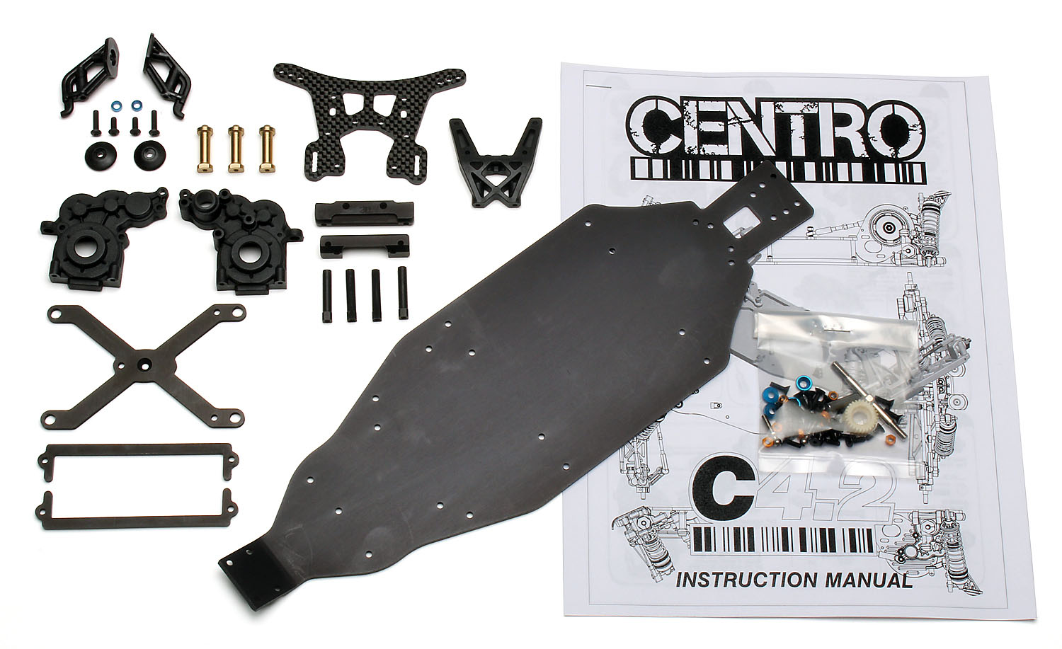Additional tuning possibilities are available with Centro's range of optional accessories, including front bulkhead brass weights, front brace, and carbon chassis side stiffeners.
