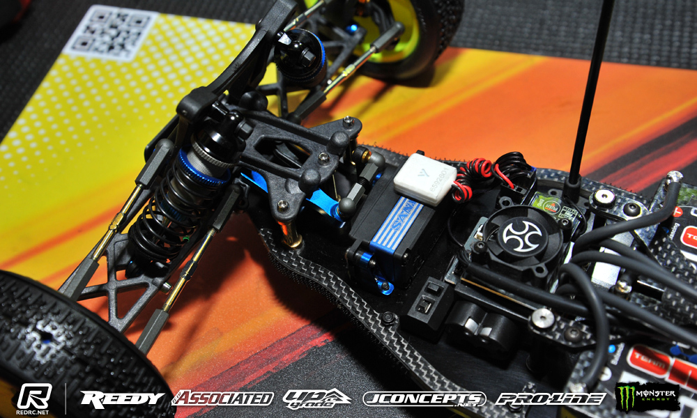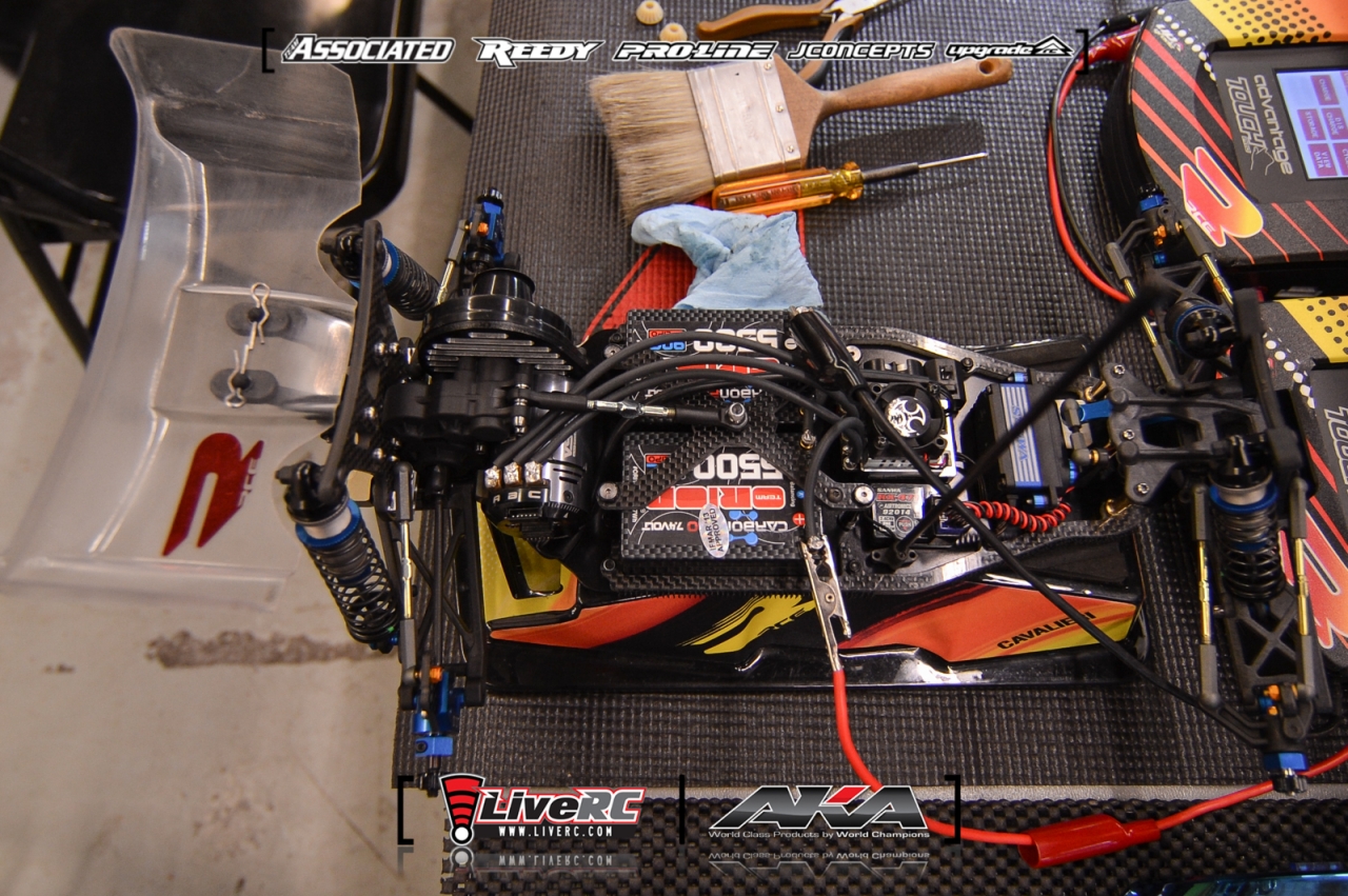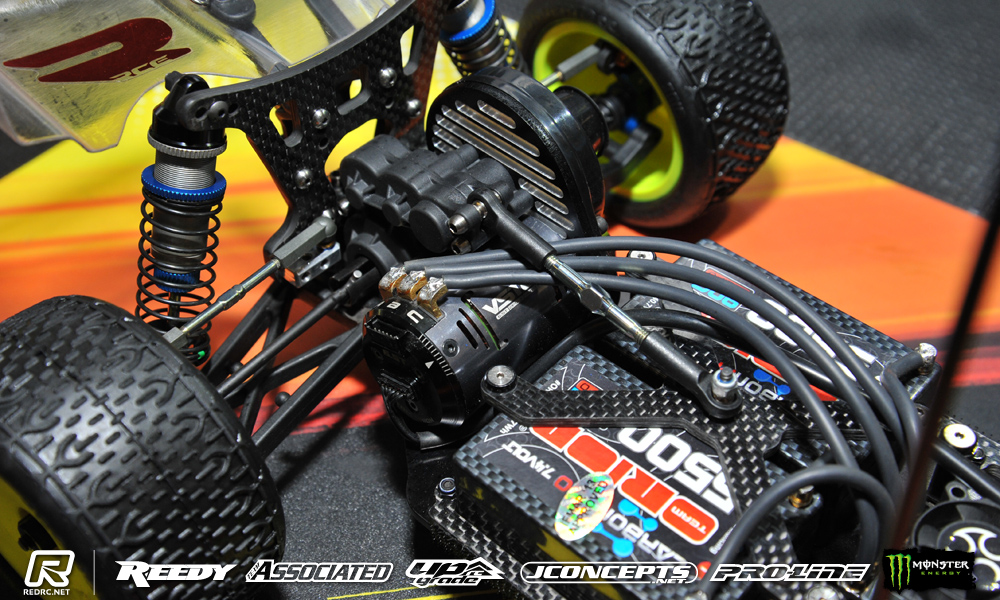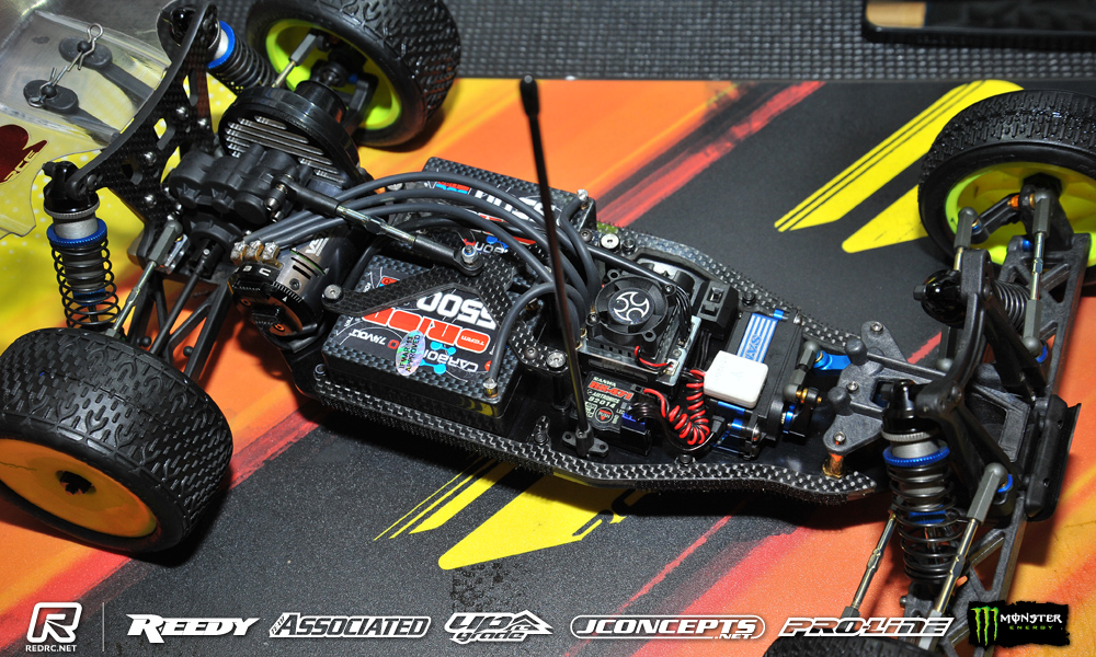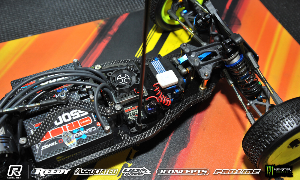 With the recently announced B5 still not available, even for team drivers, Associated’s Ryan Cavalieri is still running the traditional “Centro” C4.2 conversion on his B4.2. Very happy with his car, Ryan told us that he is running his basic setup for this track apart from the use of a low profile servo and a front roll center adjustment, with the aim of getting the car to sit more on the front in the corners and give a more precise feeling on the steering wheel.