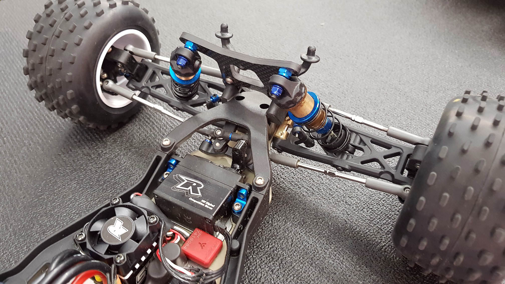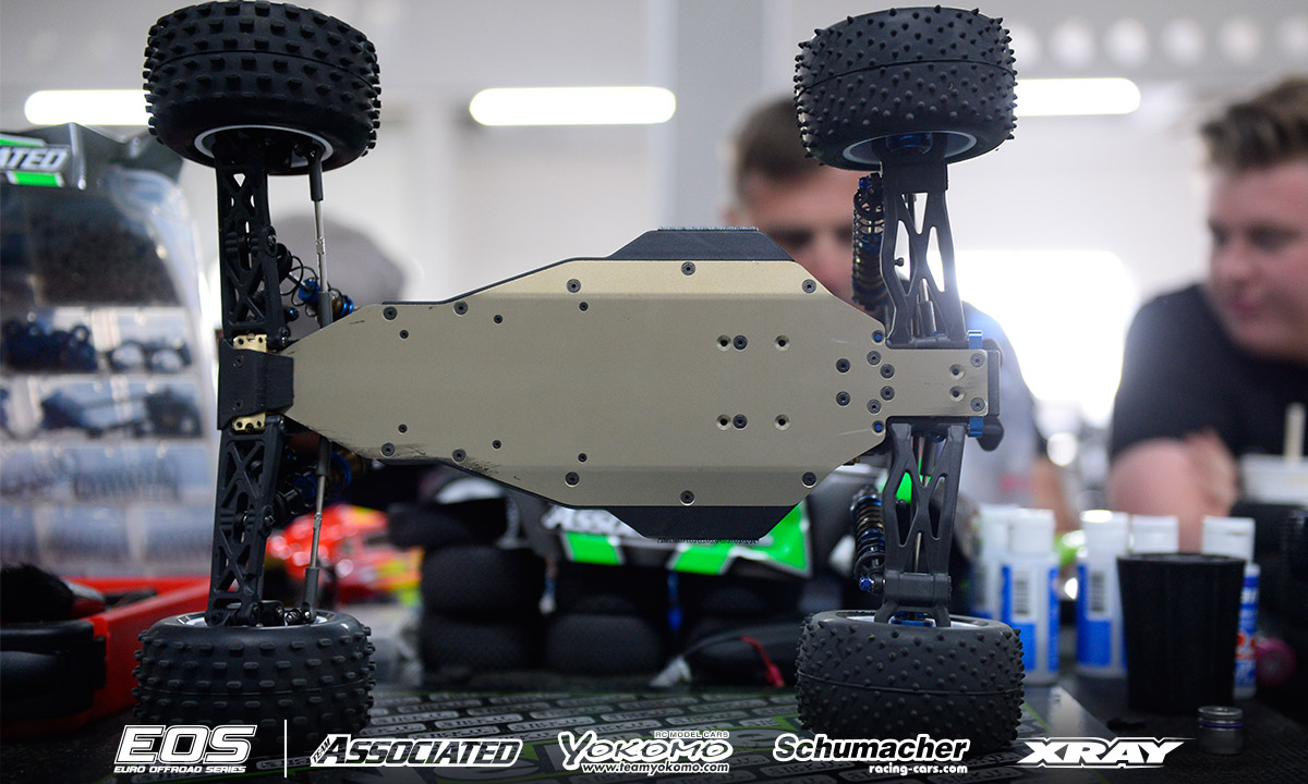 Remarks: Finnish rising star Joona Haatanen is attending the support Mod Truck Class here at the Arena33 in Andernach behind the wheel of Team Associated's latest Truck release T6.1. Sharing most of the platform with the B6.1 buggy, Joona's example is equipped with a front brass bulkhead and a steel weight plate under his electrics.