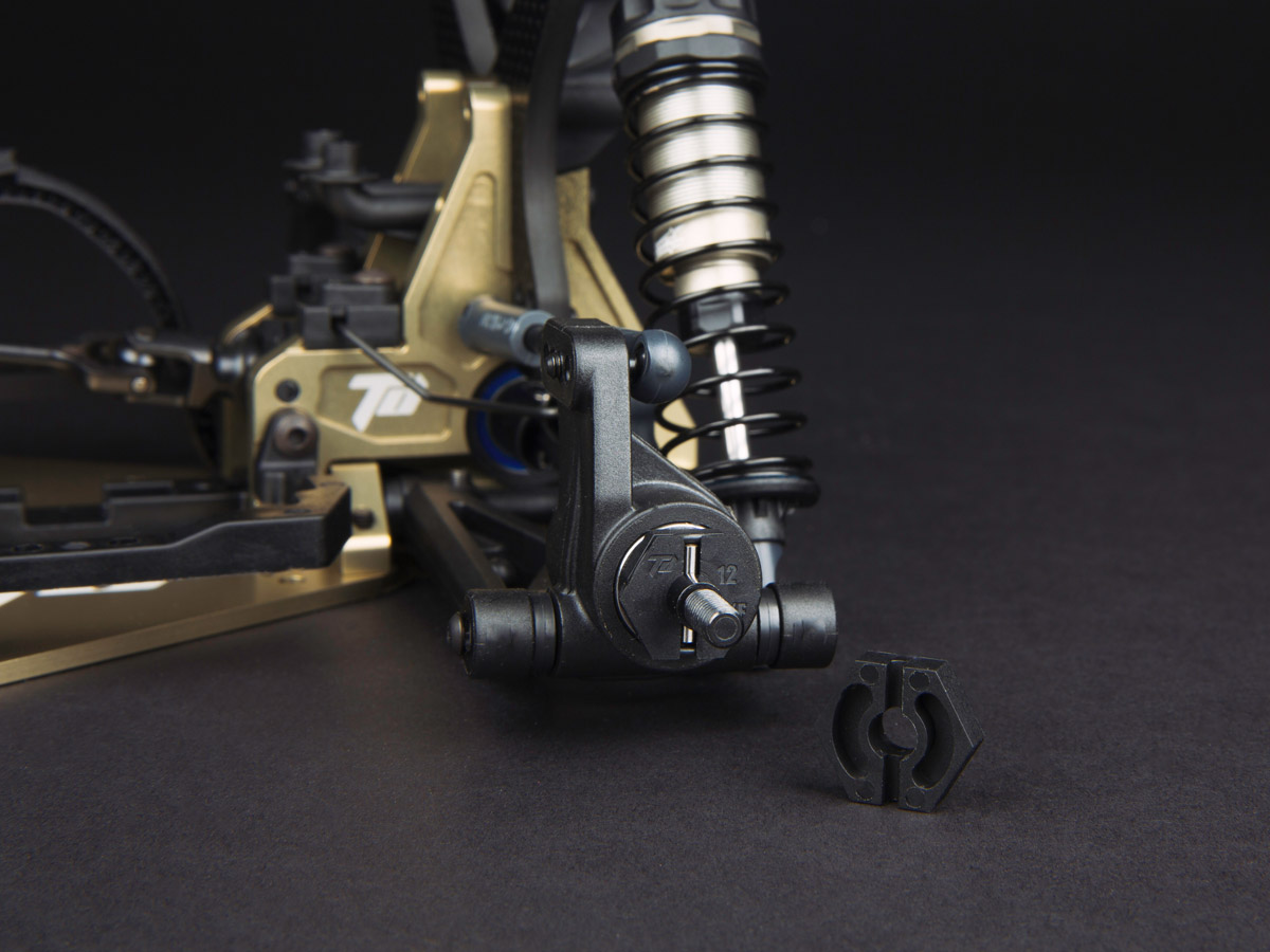 The DEX410v5 includes all-new 12mm front and rear wheel hex fittings, as well as a full set of 14mm units, straight from the kit box. This provides ultimate wheel choice flexibility, making it easy for you to run existing wheels you own, and quickly conform to pre-mounted control tyres if the competition dictates.