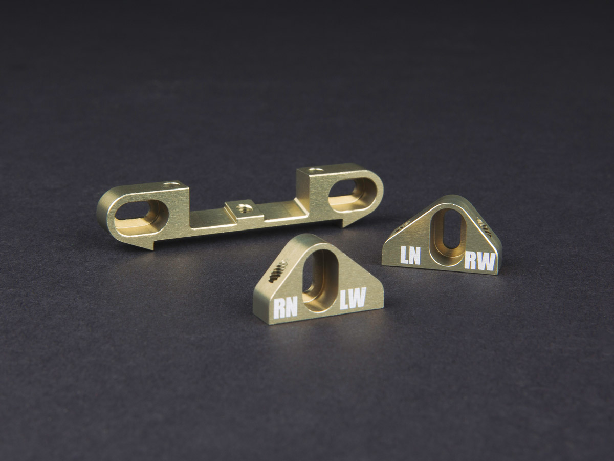 Fast and simple inboard rear-toe angle tuning can be easily achieved due to the precision suspension mount insert system supplied with the DEX210F. Engineered from 7075-T6 aluminium, providing reduced weight and precision fit, the rear suspension mounts benefit from CNC machining for ulta-consistent fit and finish.