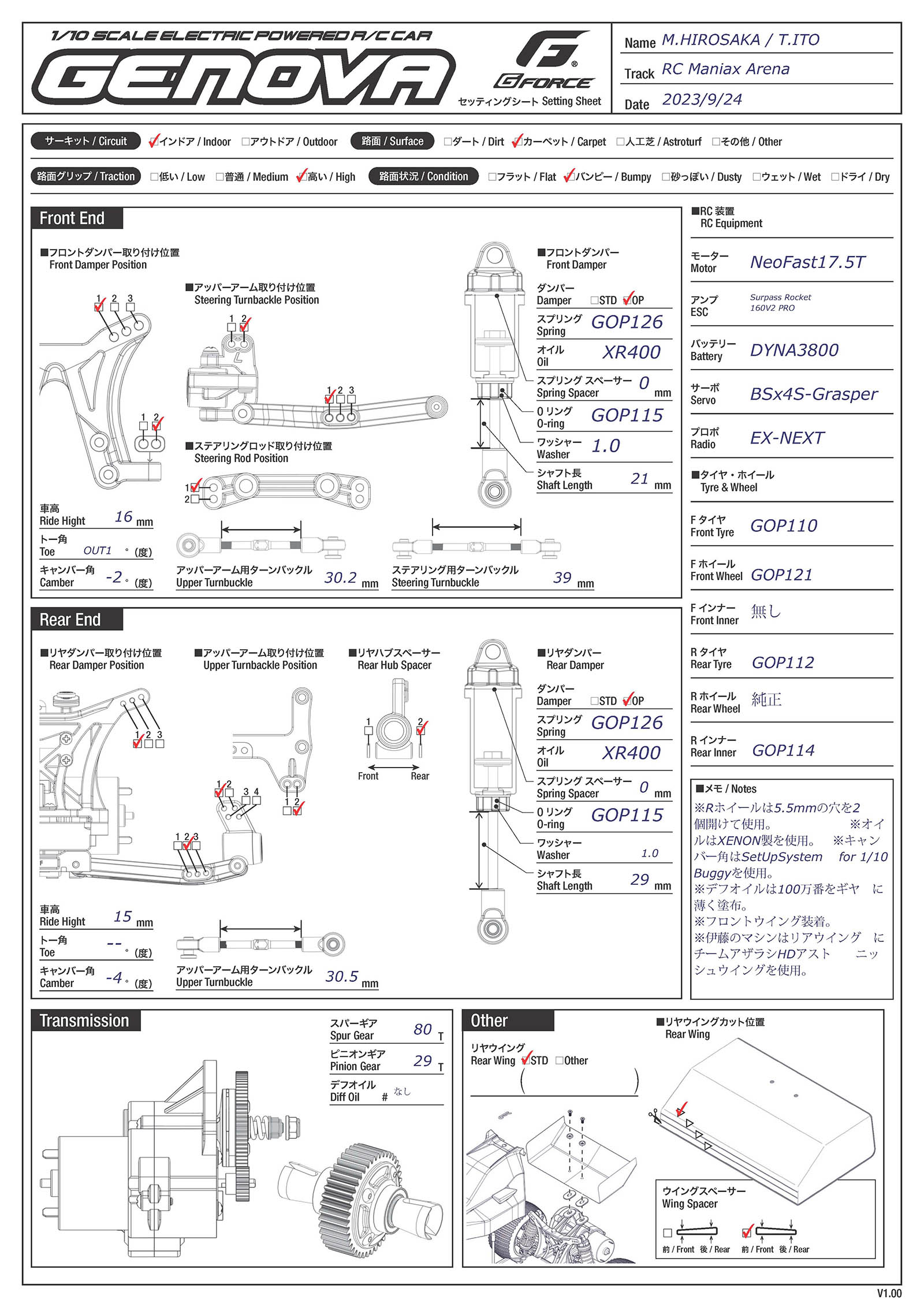 * The oil used is made by XENON. *Camber angle uses SetUpSystem for 1/10 Buggy.