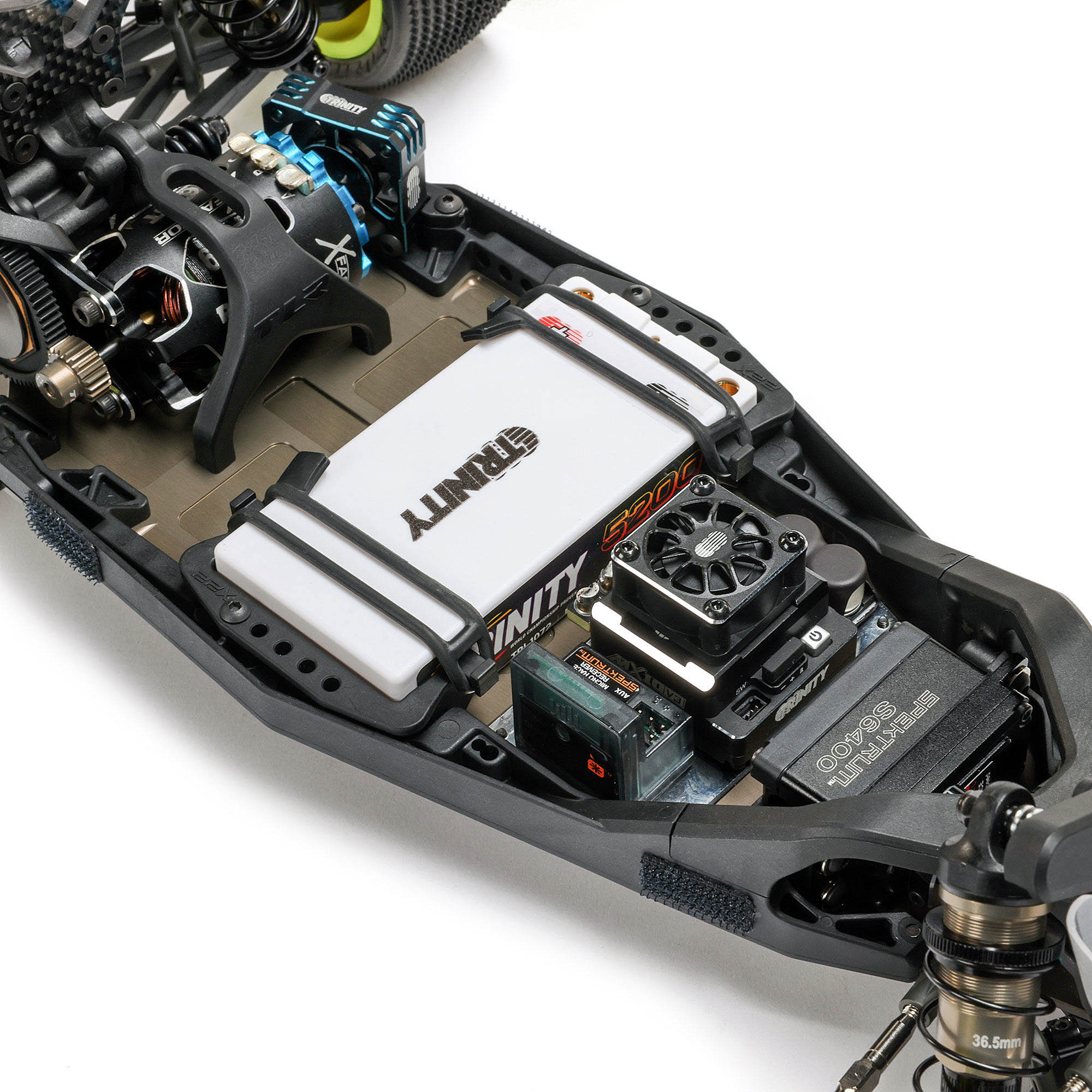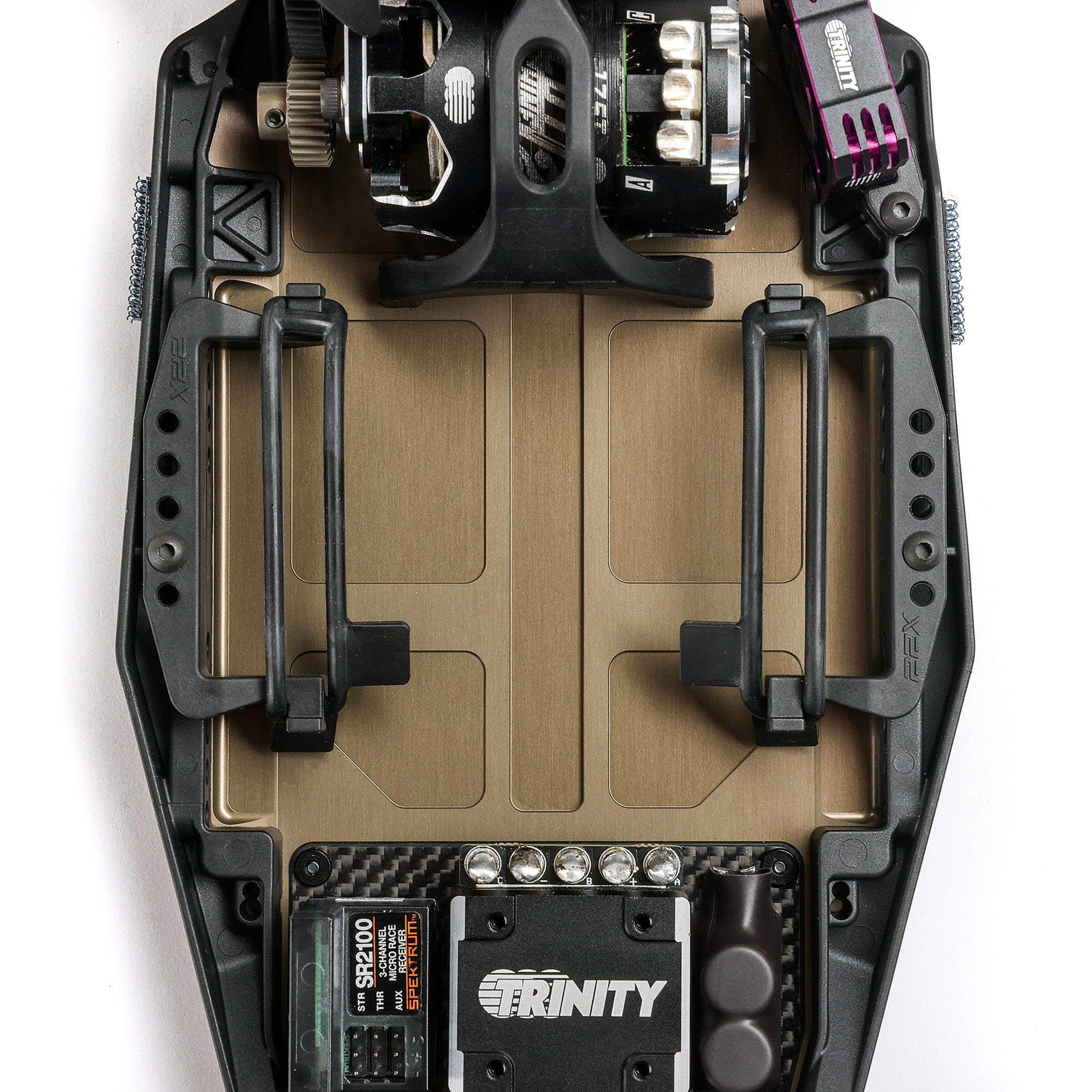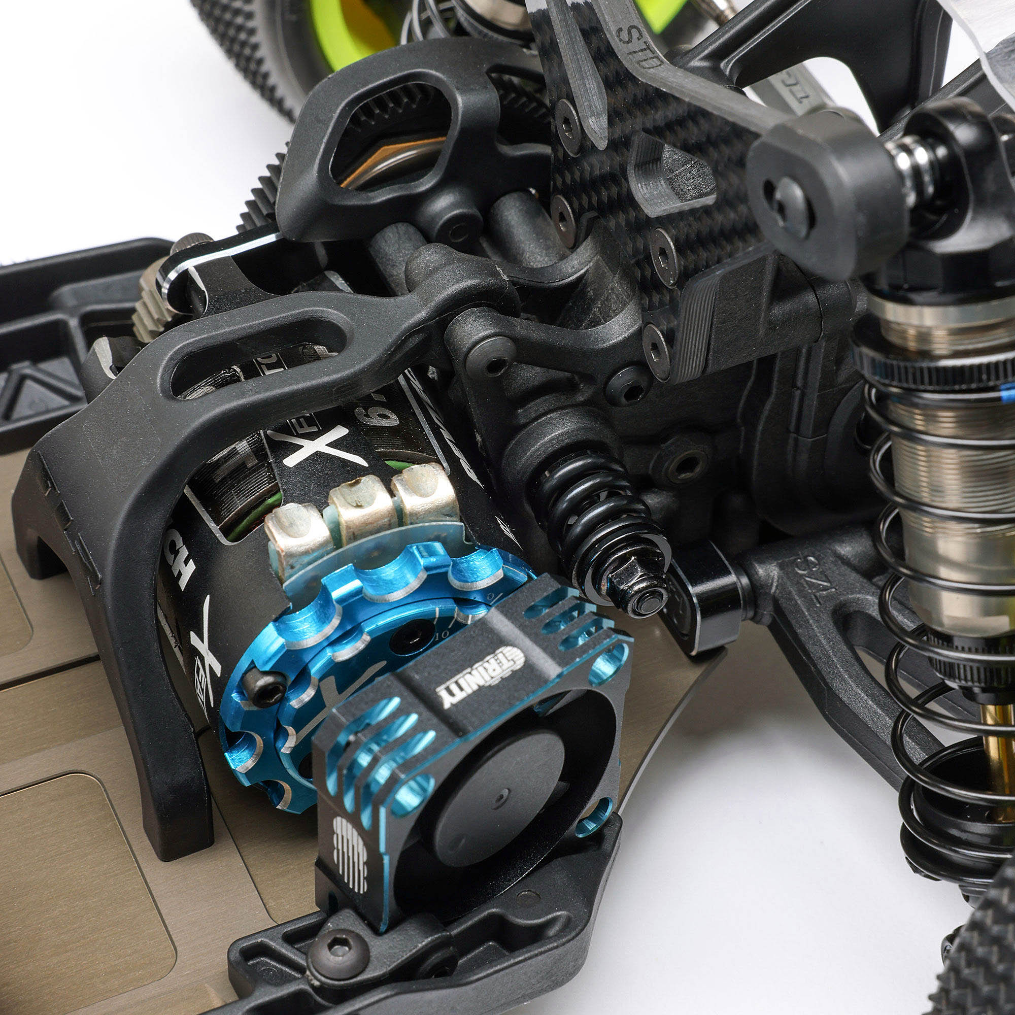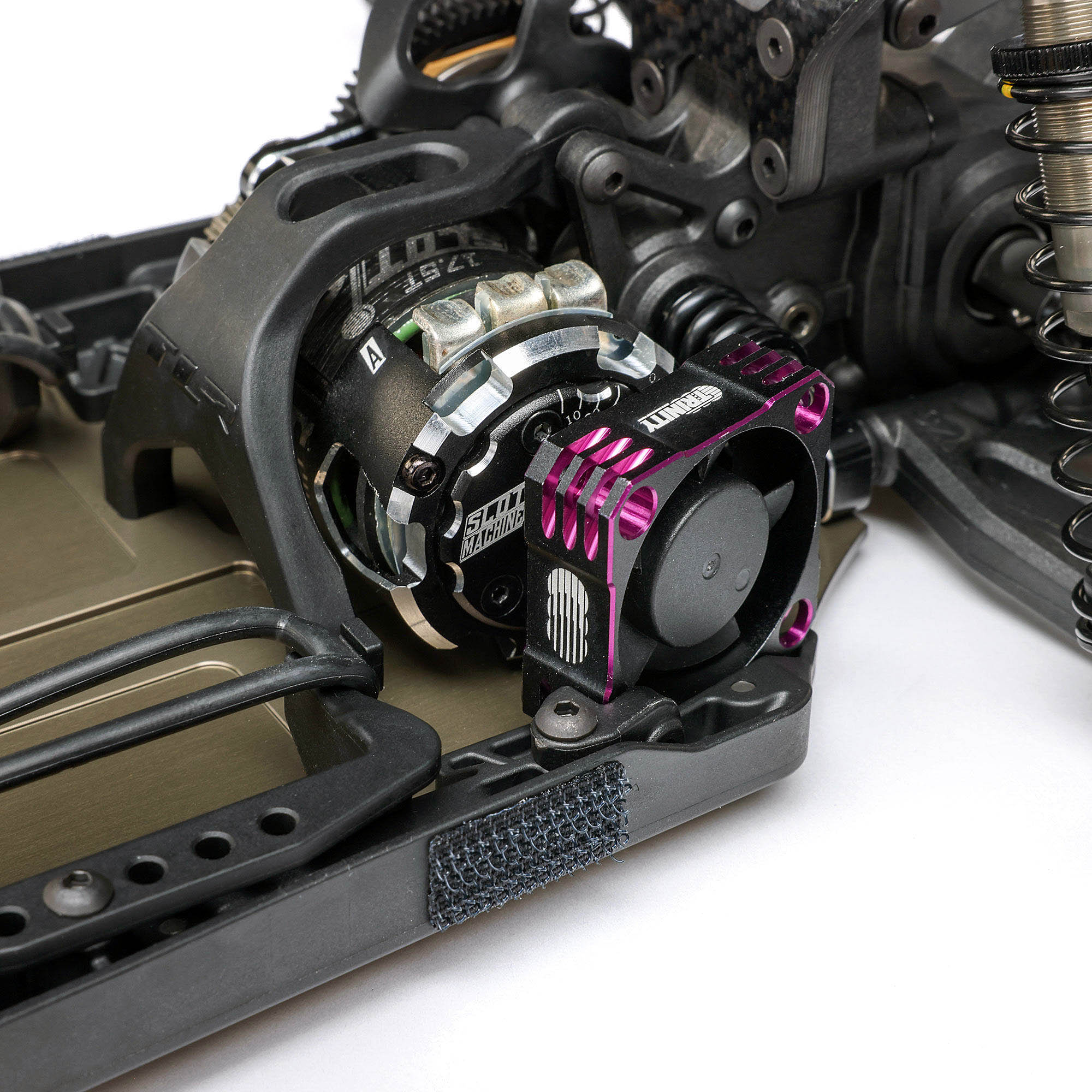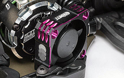 The prevalence of spec racing has led to the need for many racers to install motor fans for keeping temperatures lower. Rather than an aluminum mount or double-sided tape, the 22X includes a built-in, molded fan mount secured to the mud guard. You can easily and securely install your choice of widely available 30mm x 30mm fans.