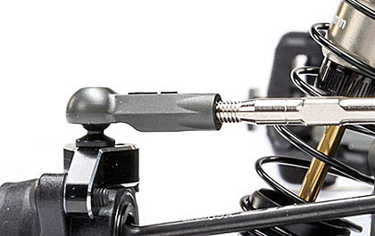 The TLR 22X AC race kit features new ball studs and rod ends with 5.8mm balls for interference-free movement. The larger ball studs provide more undercut surface area to hold the rod ends in place while minimizing the friction in your suspension. The rod ends feature an opening that allows you to make quick and easy roll center changes without having to pop the rod end off of the ball stud.
