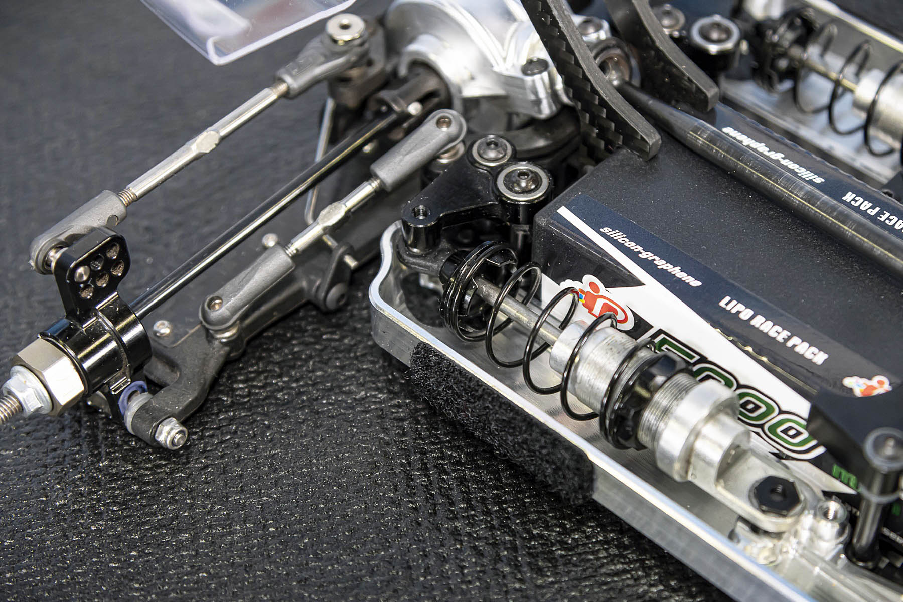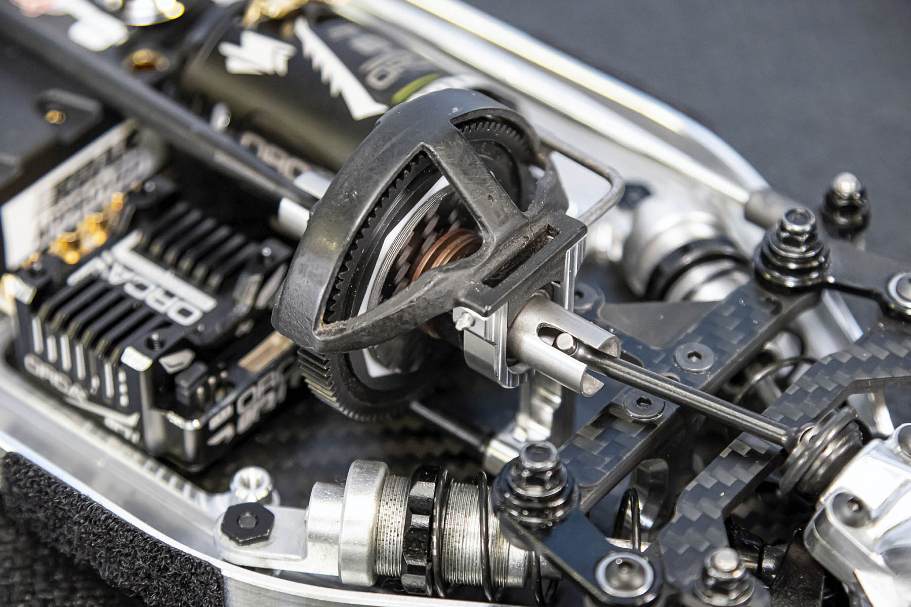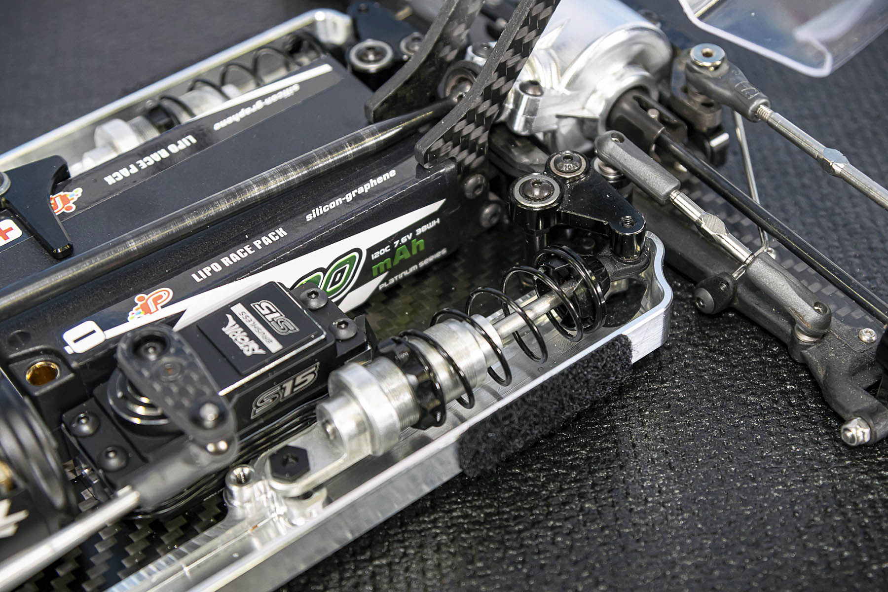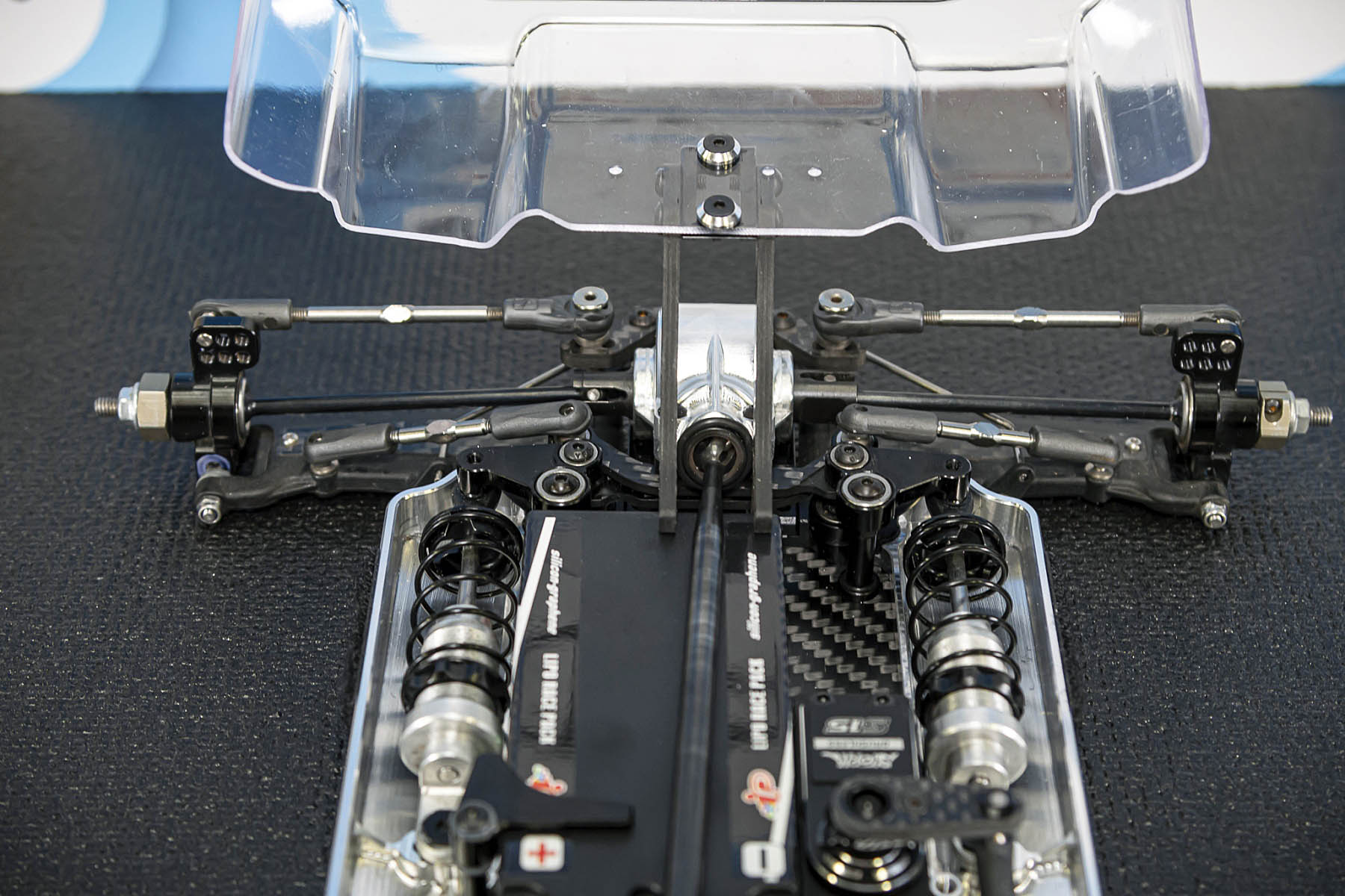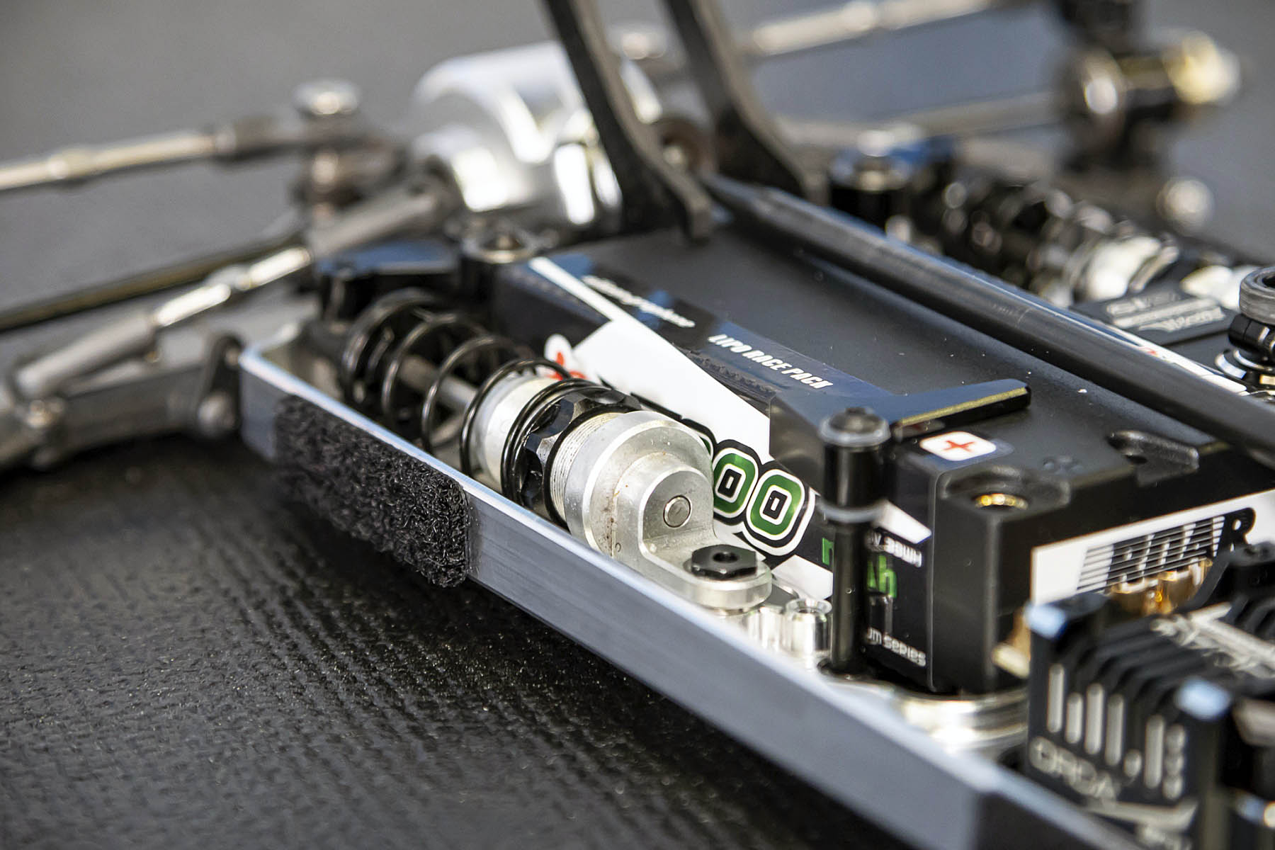 The special features of our car are the weight distribution, aerodynamics and the low centre of gravity and weight. The vehicle presented in Daun had a weight of 1666gr. and that with the heavy aluminium parts, without titanium screws and so on. A current car (competitor stock version, with a lot of titanium and aluminium drive shafts) had a weight of 1660gr. So we can balance the weight in the car as we need it.
