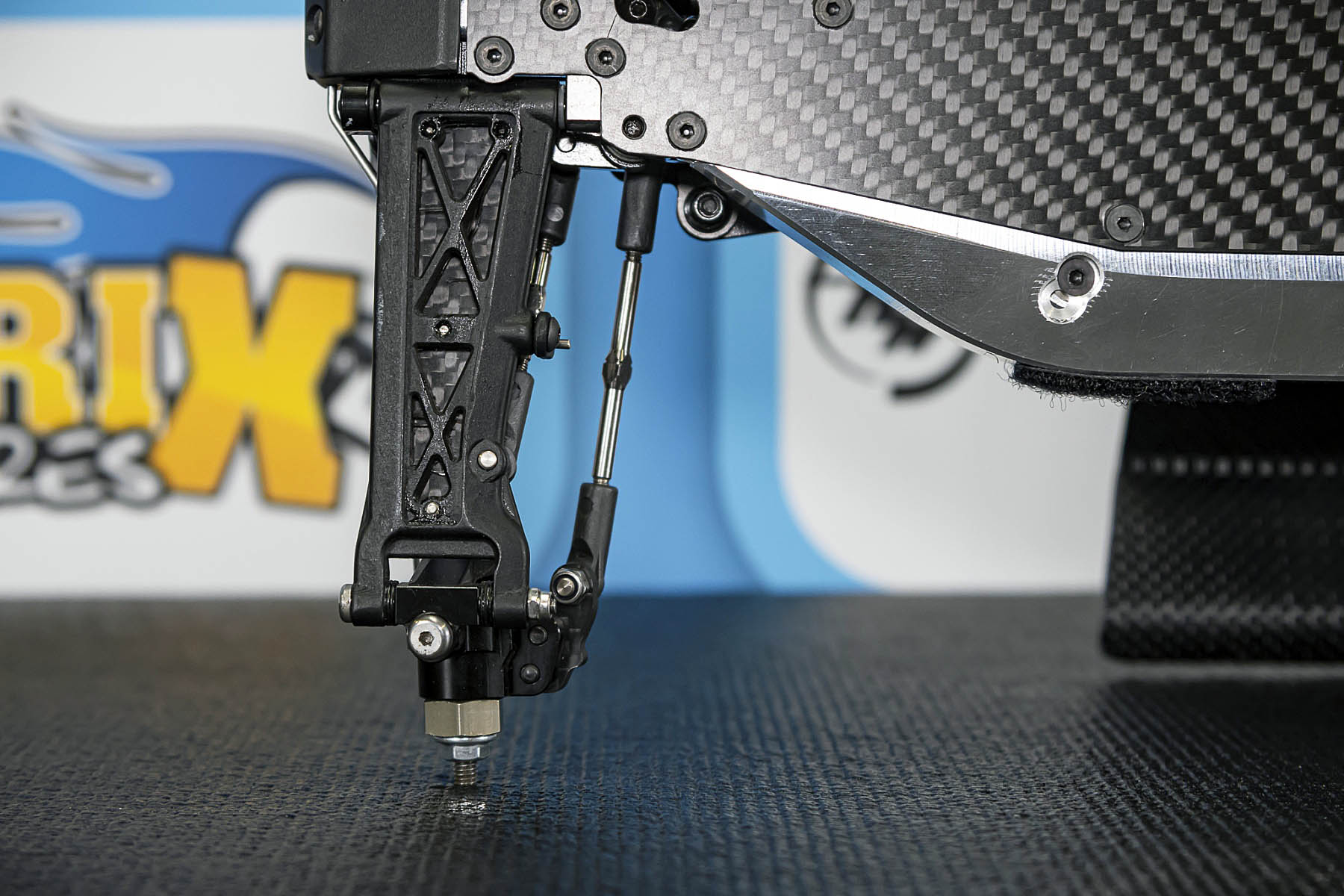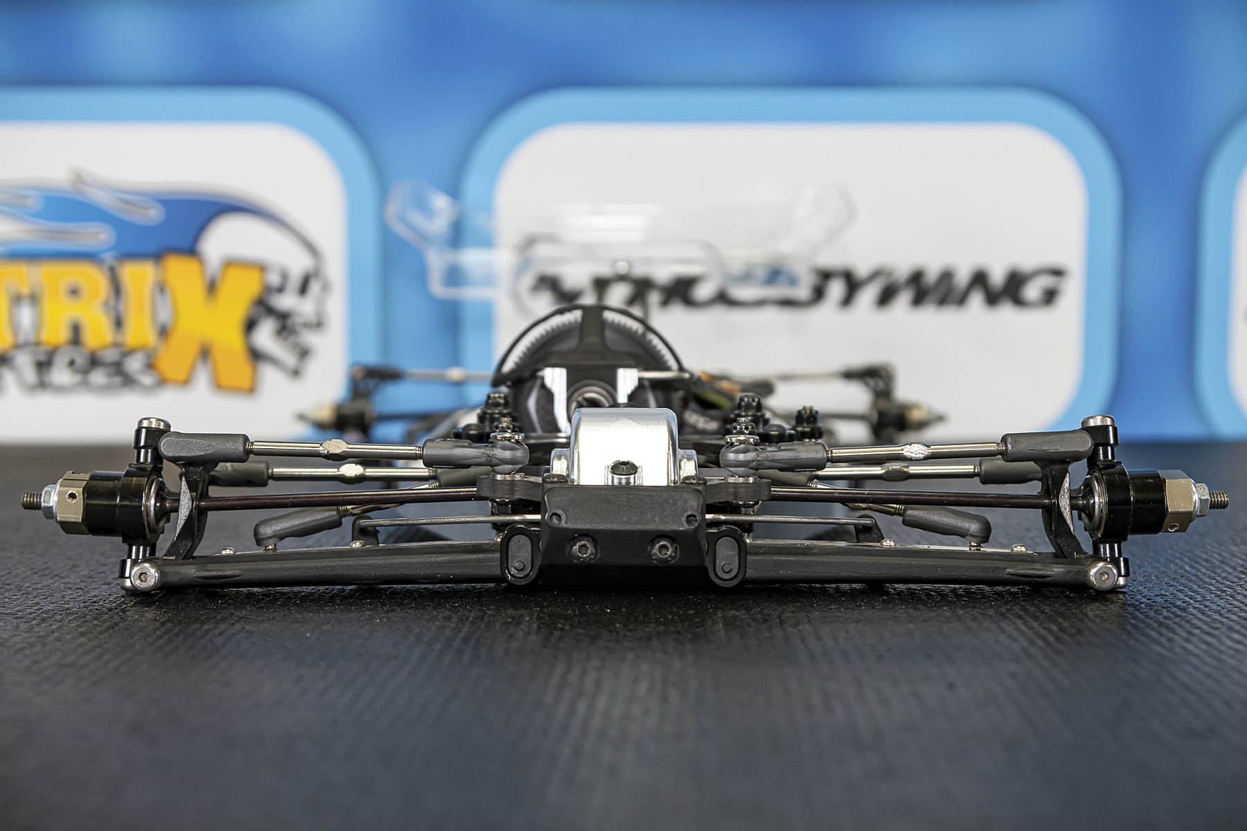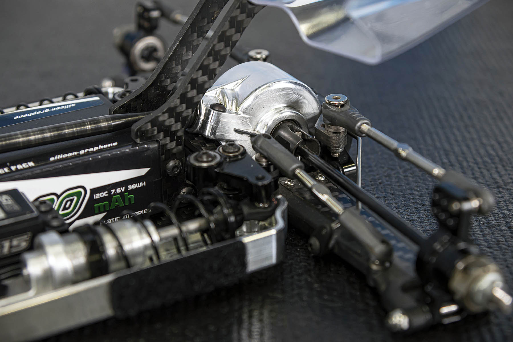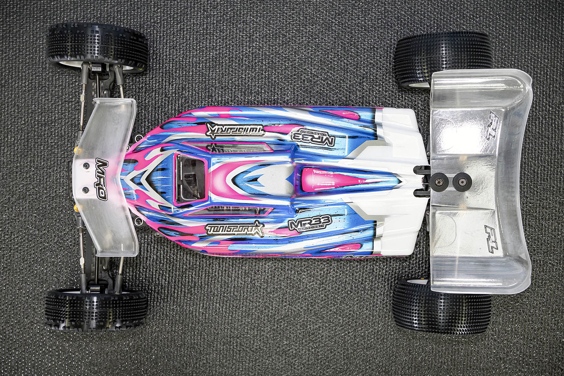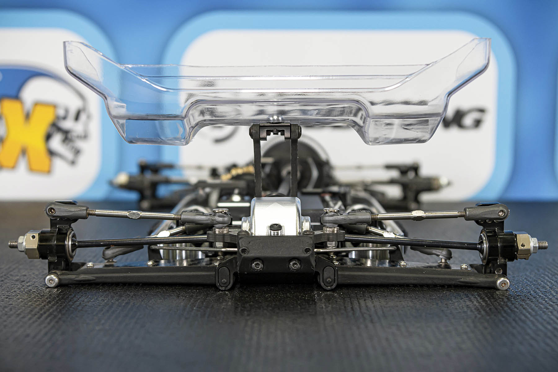 The special features of our car are the weight distribution, aerodynamics and the low centre of gravity and weight. The vehicle presented in Daun had a weight of 1666gr. and that with the heavy aluminium parts, without titanium screws and so on. A current car (competitor stock version, with a lot of titanium and aluminium drive shafts) had a weight of 1660gr. So we can balance the weight in the car as we need it.