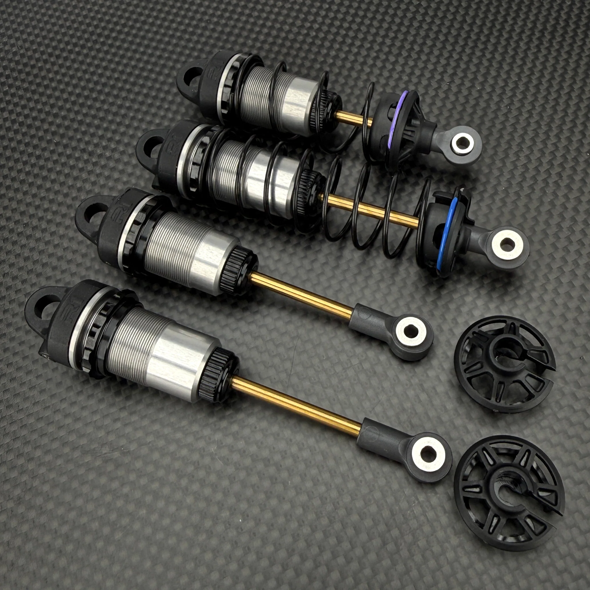 - Shock towers: 4mm carbon fiber, front and rear