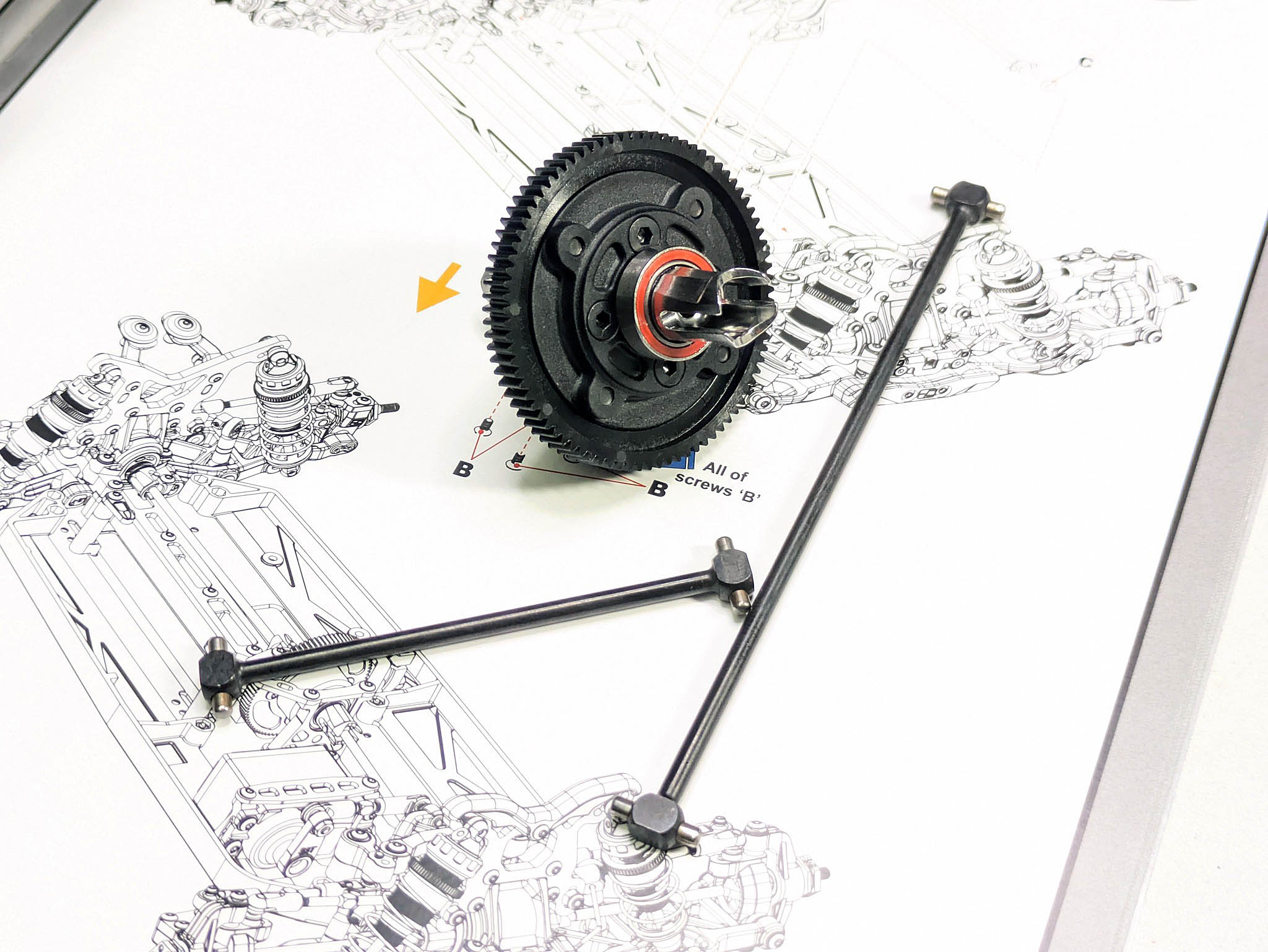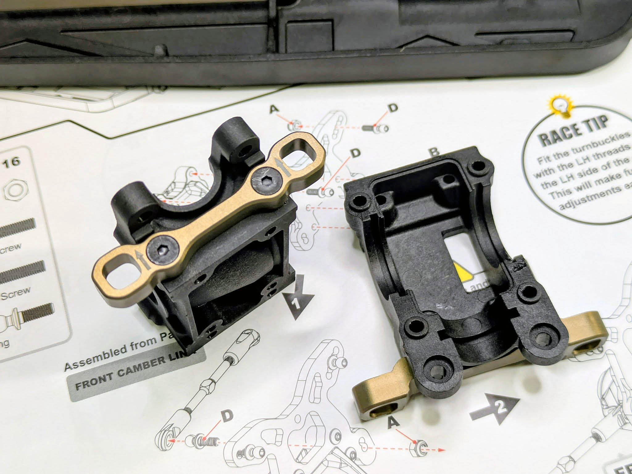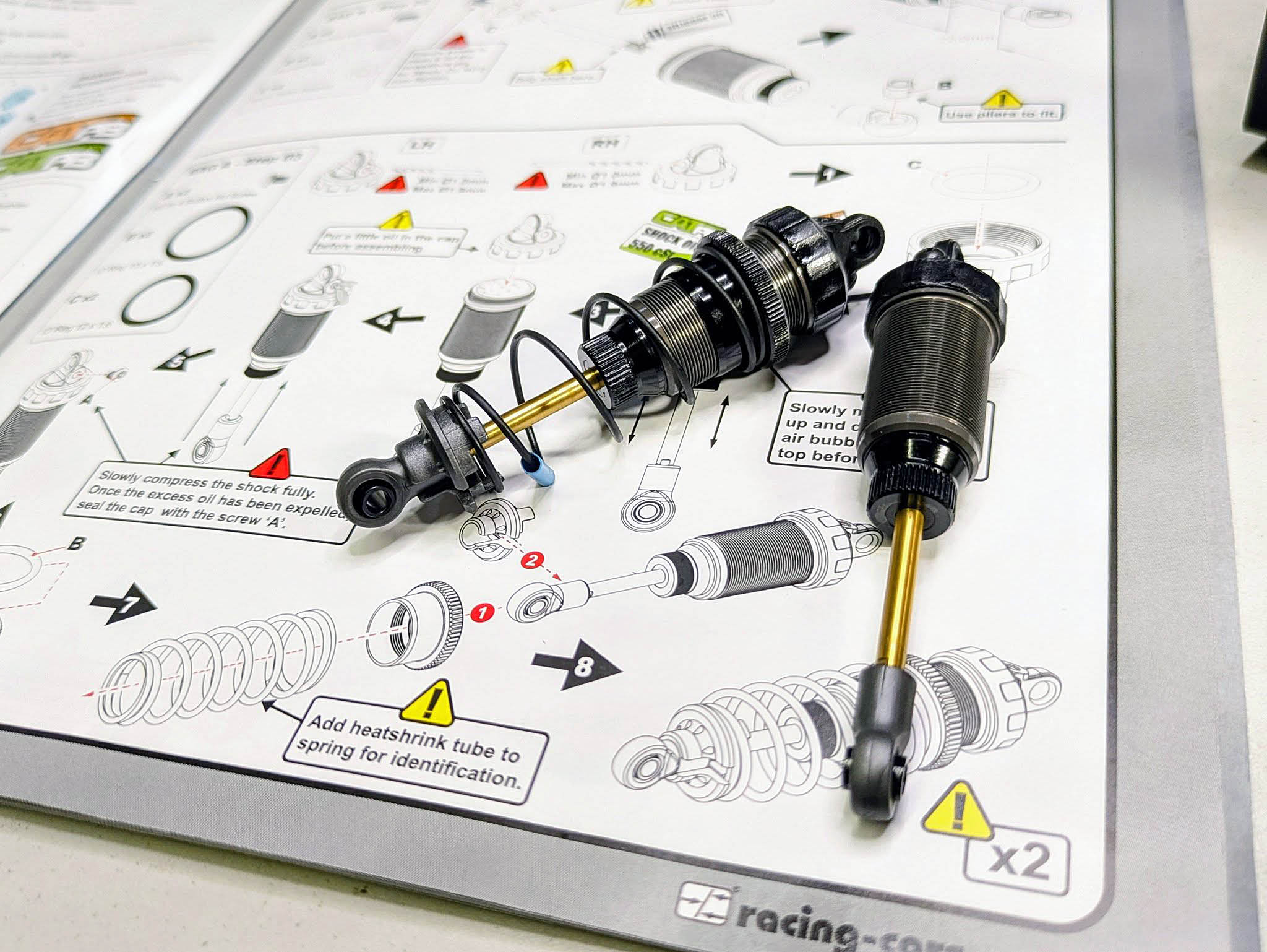 THE BUILD I have a life-long aversion to three elements of every RC build - diffs, shocks and turnbuckles. Guess what the PB build starts with. After getting my grumbling out of the way, we got on with it, following the typically excellent instruction manual and building the kit to the recommended Dirt edition settings - starting with those three much unloved jobs (speaking purely personally of course!).
