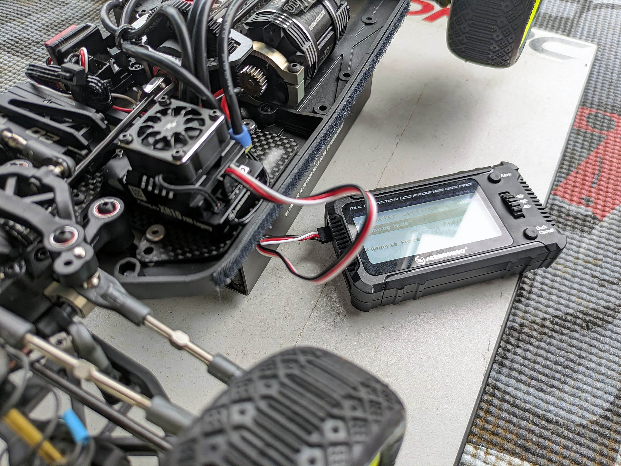 On the electronics side, the Legacy ESC proved an ideal companion. A couple of friends lent me both the Hobbywing OTA Programmer, and the Multifunction LCD Program Box Pro at different points to experiment with settings. To deal with my return to 10th, and a "slightly" heavy trigger finger, we played with Throttle Rate Control (setting it to 20), Initial Throttle Force (2), PWM Drive Frequency (12K and 16K at different points) and tuned Brakes with both Max Brake Force at 85% and playing with both Brake Rate Control and Brake Frequency. For Boost and Turbo options, it was a gentle start, but with hopes to play more in this realm next time I make it to the track. On these first runs, I appreciated the smoothness of power delivery, and also the way we made the Brake settings work - for both in-air control and getting deep into some of Chargers' tighter corners. There are so many options to explore here, and I'm excited to keep learning what the Legacy can do. I already have a list of settings to try next time I make it to the track, starting with those Boost and Turbo options.