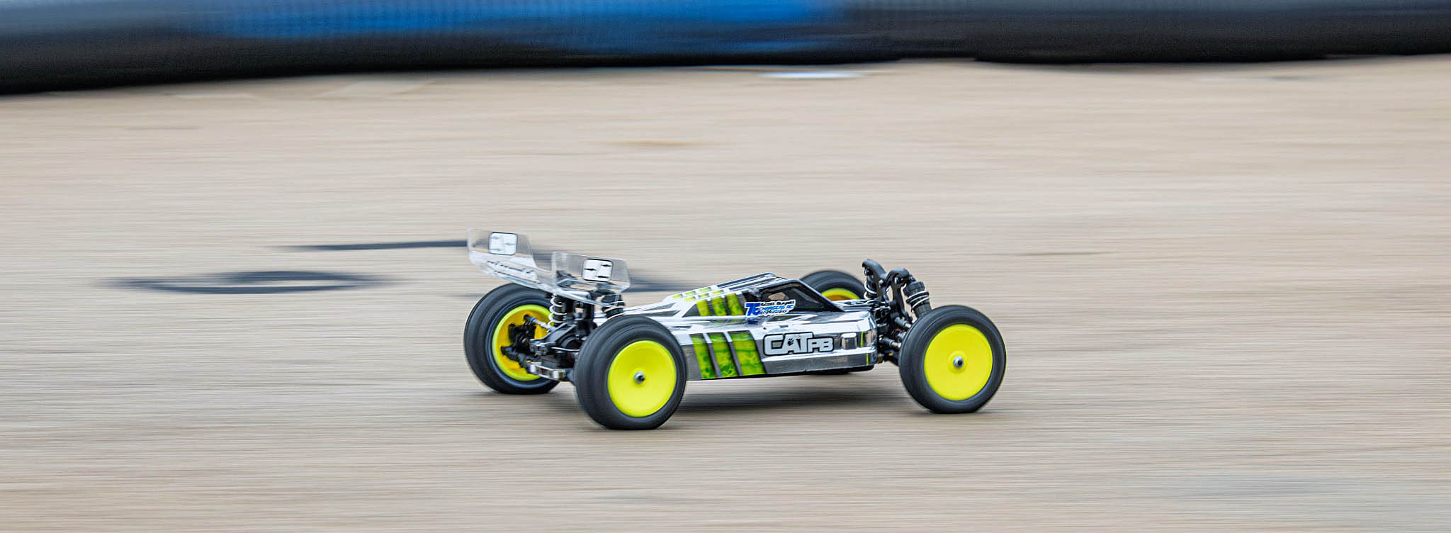 With this surface being somewhat unusual, I wasn't sure what to expect, or even where to start in terms of setting up the CAT PB. When in doubt, build it to kit settings, right? So that's what we did, following the manual for the Dirt edition build, including shock and diff fluids, geometry choices, anti-roll bars and so on. I figured I'd go from there, heading for my first track day with a fully charged electric screwdriver, fully expecting to spend all day changing diffs and shocks and anti-roll bars and dialling in geometry to get the car in the window.