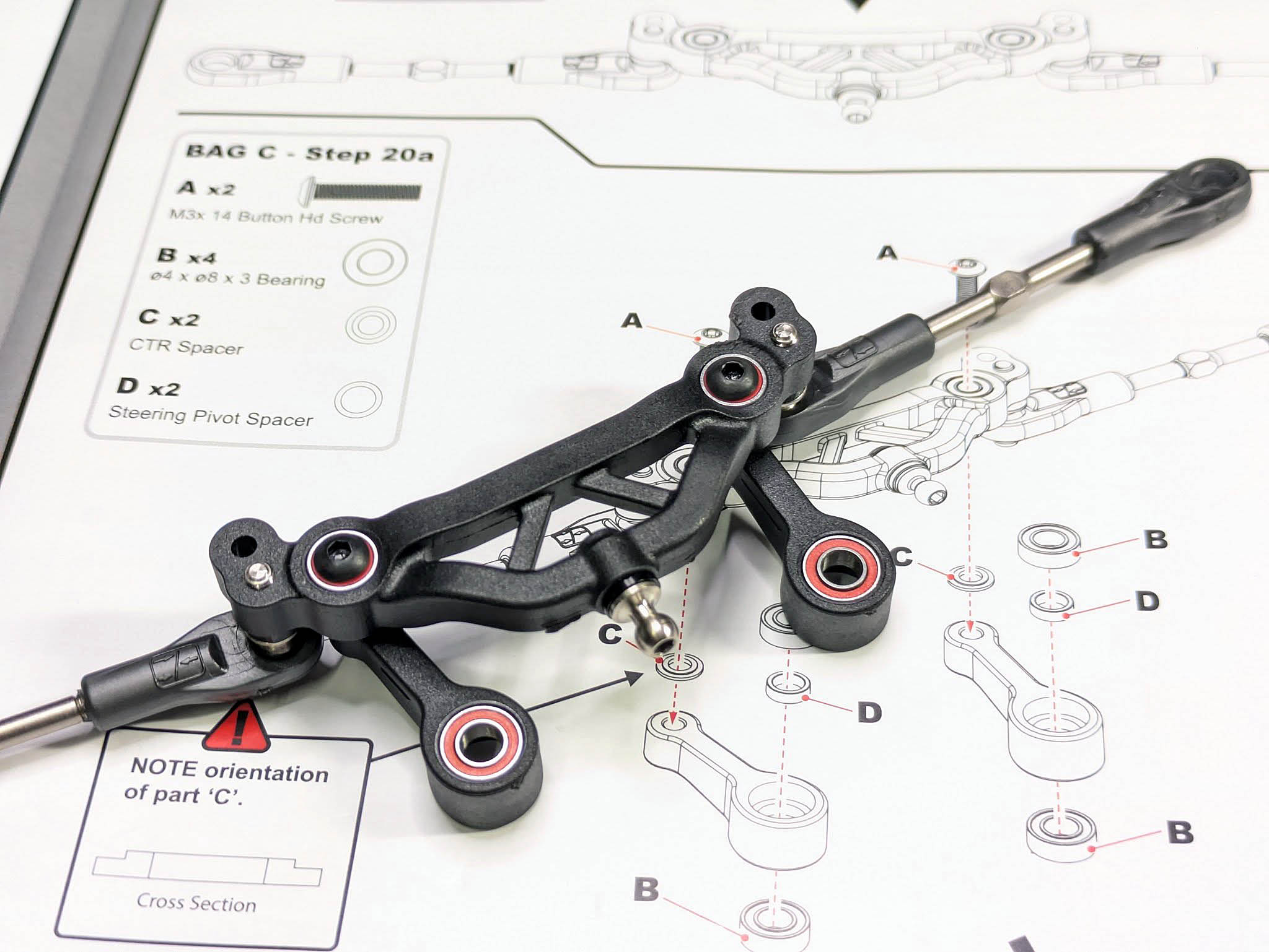 There are a couple of places where I stumbled - essentially because having built more than a few cars over the years, I felt quite justified in taking only a cursory glance at the manual, and then getting on with the next step. That meant I missed the fine detail a couple of times - different width inner and outer wheel bearings, or different length front castor block screws, for example - and had to back-track to fix operator-induced errors. The manual is easy to follow, and quite clear on what's required - I just chose to ignore it and paid the price.