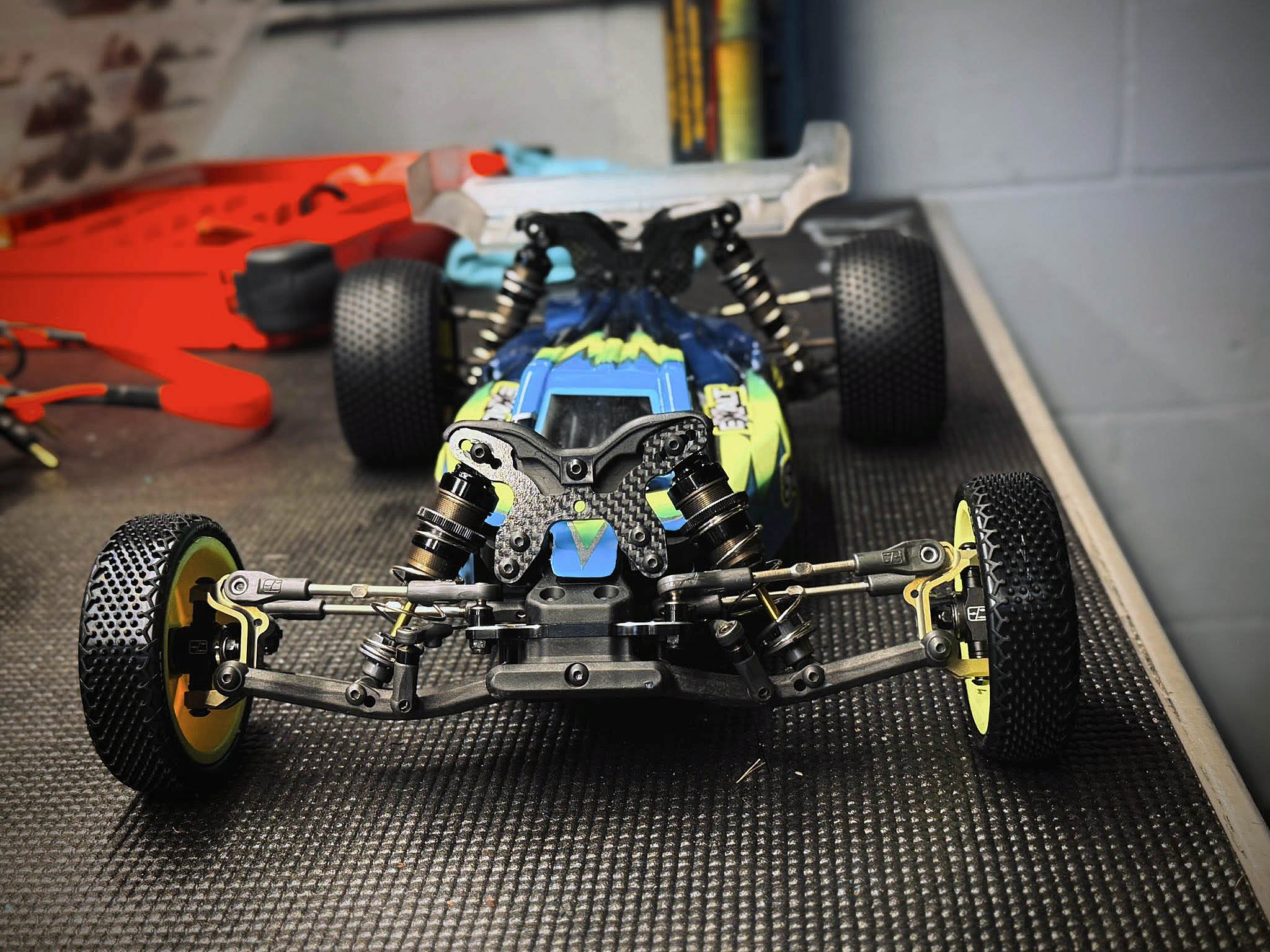 Jason Venezia is one of the OG Dinner Club members, showing up when he can for the vibes, the racing, and the hangouts. While the field keeps evolving, Jason is still rocking the older Team Exalt Phoenix 17.5 instead of the newer Gen X — might be time to start bugging Kevin Abbott for that upgrade - but somehow he keeps it moving with a setup that works for him. He’s been leaning into the newer Aerox springs over the old Core HRs and running a super loose slipper, giving his LD3M a free and forgiving feel on track. Whether he’s battling in the mains or kicking back with a cold one once things heat up, Jason brings the exact energy the Dinner Club is built on — good times, good racing, and even better company.