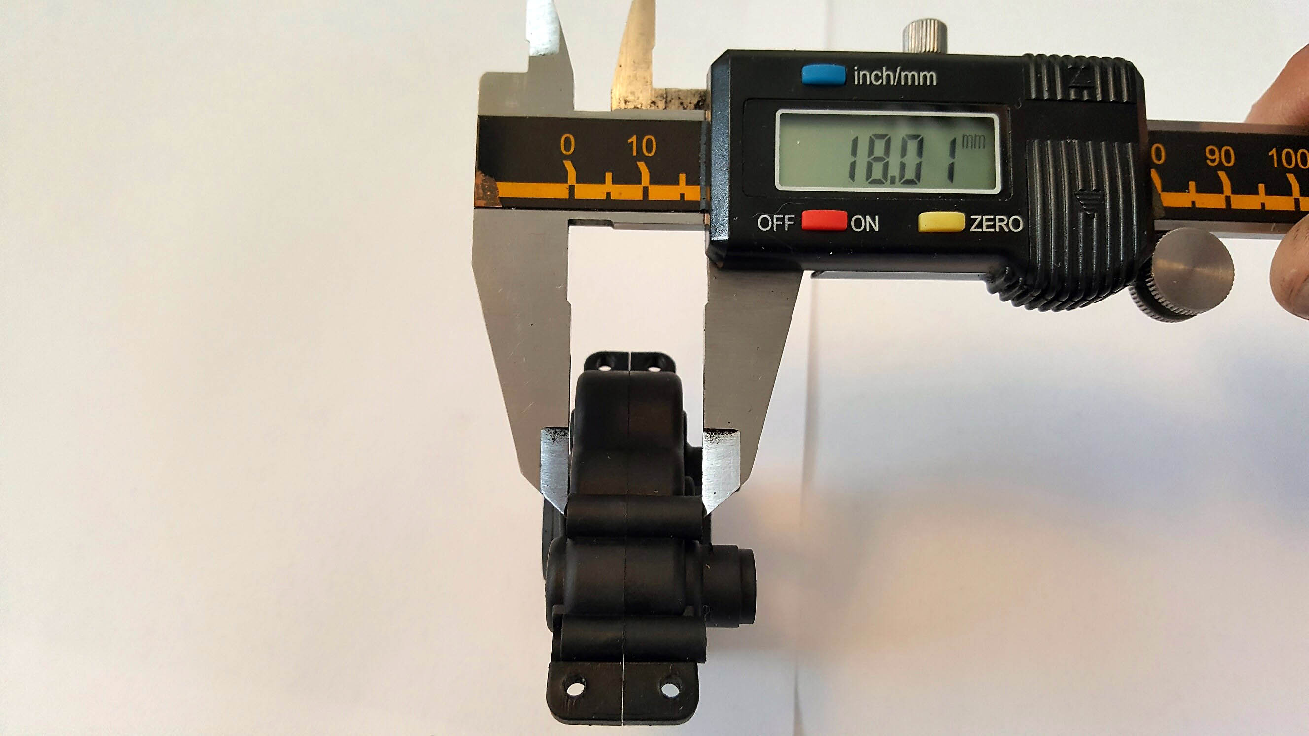 1: With the gear box halves together, cut down the ‘Three’ motor plate posts around the layshaft hole, until you get to 18mm total.