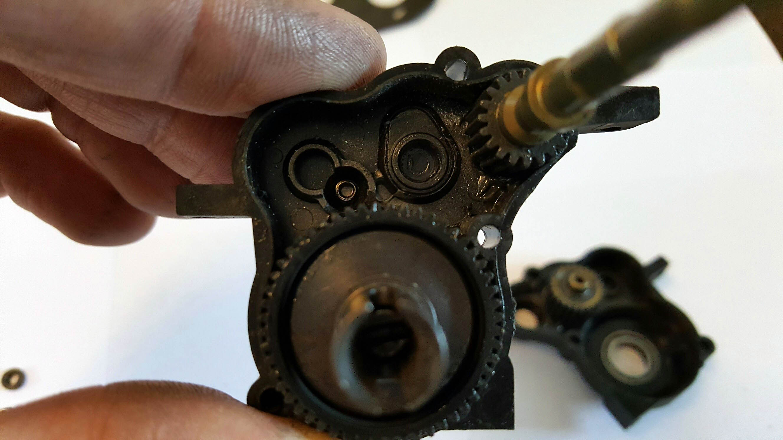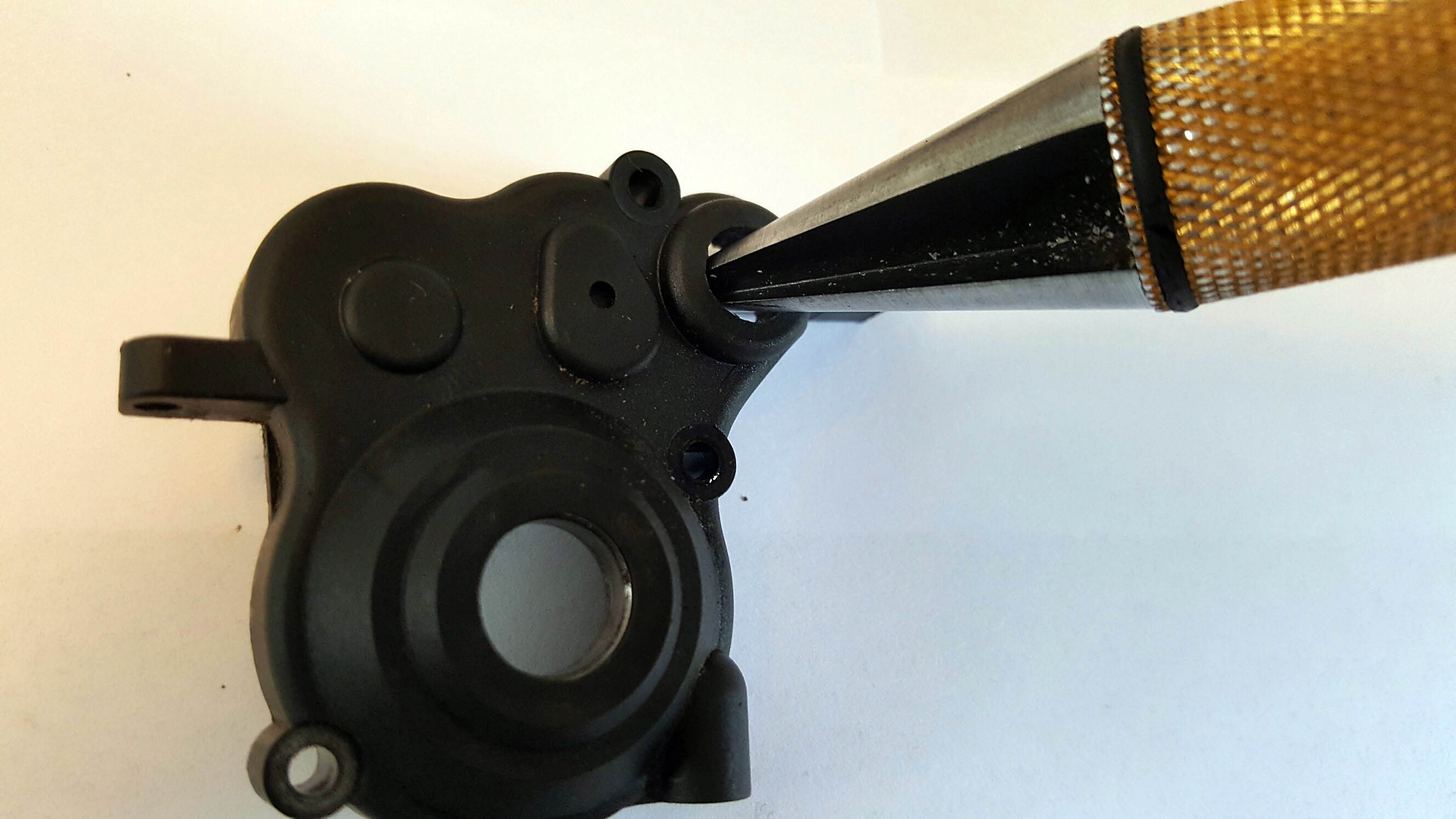 2: Open up the blank side of the gear box half, just until you can fit the layshaft through the hole.