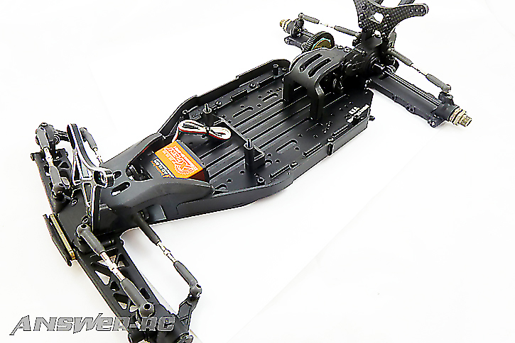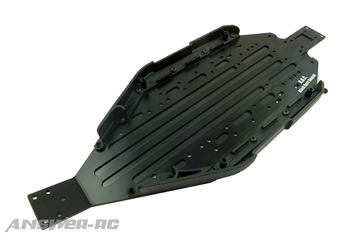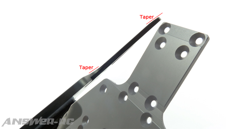 The chassis used is the same for both the S12-1M Mid forward 3 gear layout motor and the coming soon S12-1R (Rear and Mid motor 4 gear) version which is nice to see and saves racers money on multiple cars needed for different surfaces. The chassis is very nicely made, all countersunk, hard coated and machined to introduce flex where needed. It also has a very nicely machined taper towards the rear of the chassis as can be seen in the images.