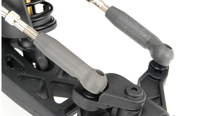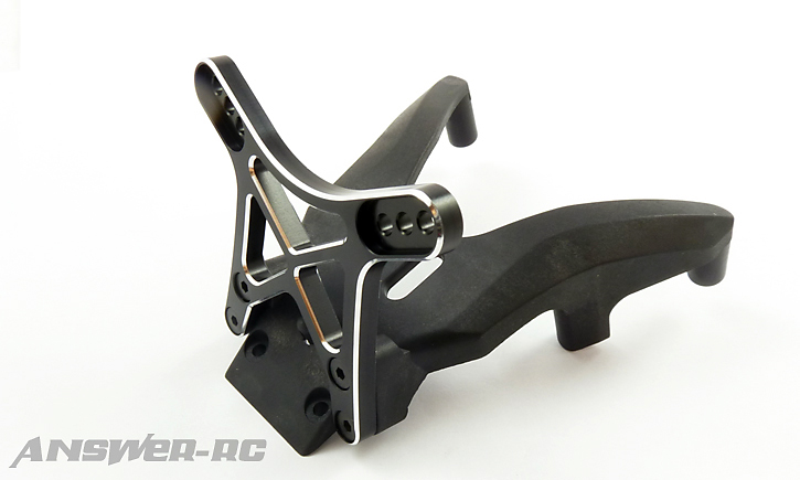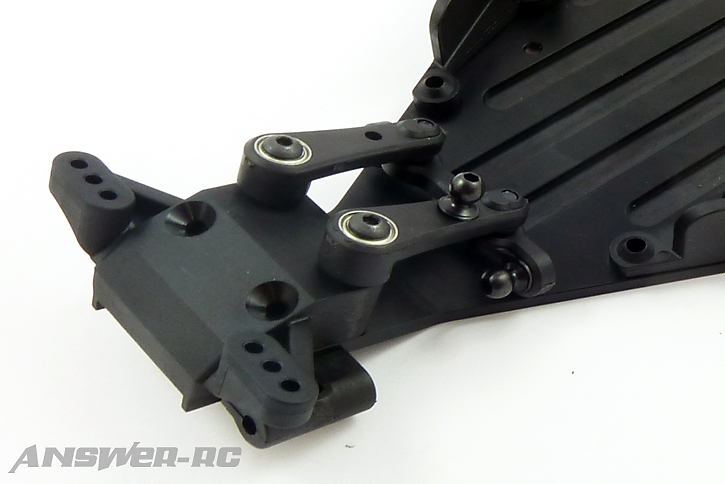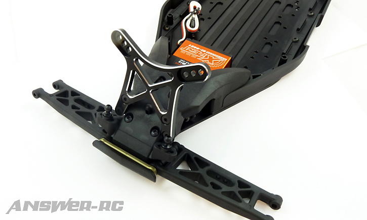 Both of the hinge pin holders at the back end of the car are CNC machined from 7075 aluminium as per the shock tower and look super sturdy, I can't ever imagine these needing replacement. The hinge pins hangers all feature adjustable inserts to fine tune the back end of the car. The hinge pins feature moulded plastic balls that attach to the end of them to allow for free and easy movement when making adjustments to tow angle or kick up meaning that you never end up with extremes of set up where the hinge pins feel like the are sitting at extreme angles and putting load on the blocks.