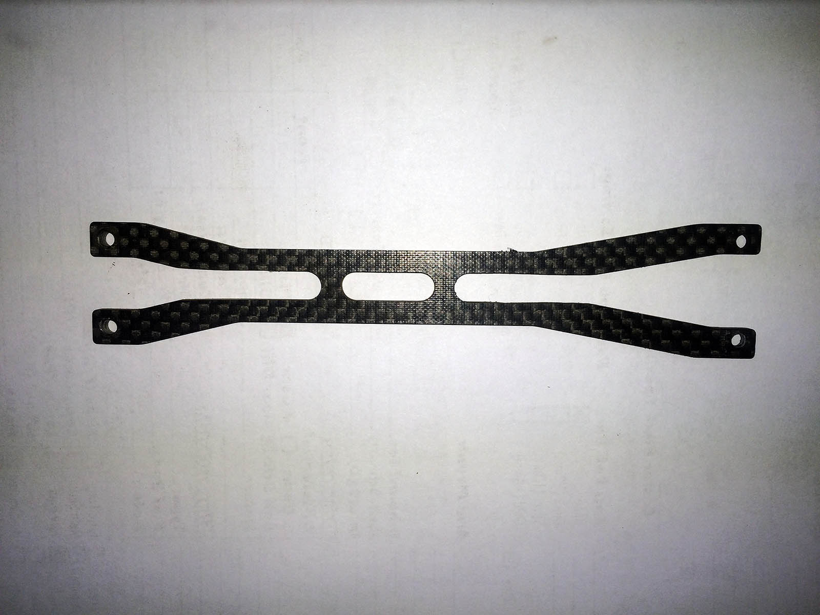 1: cut down the rear top deck. This increases chassis flex at the rear of the car, aiding traction in the rear on dirt and low-grip surfaces. I started with a standard deck and cut out the front and rear cross-braces to increase flex.