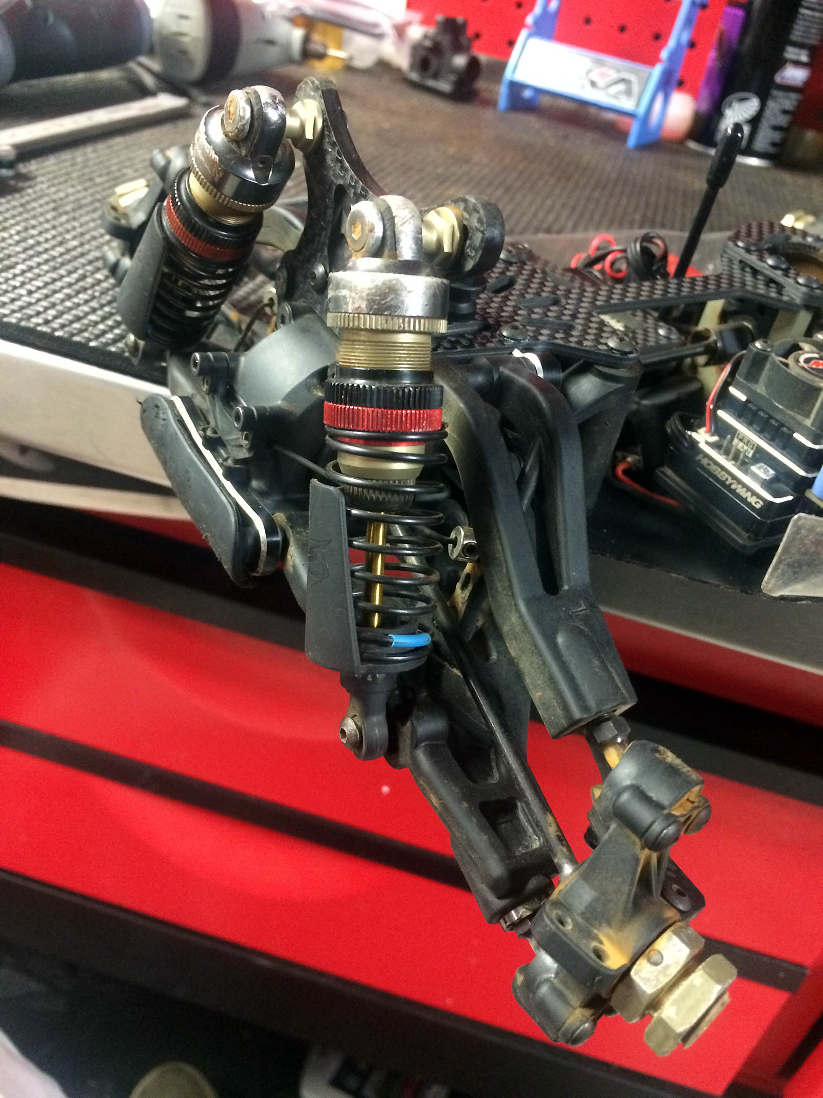 This mod takes some weight off the front wheels aiding stability, but we also found it helped with mid-corner rotation at low speeds. simply dremel 2mm from the front of the front arms and add spacers behind to move the front wheels forwards. Note: this increases bump steer dramatically and also increases static caster, neither of these have had very negative side affects in my testing.