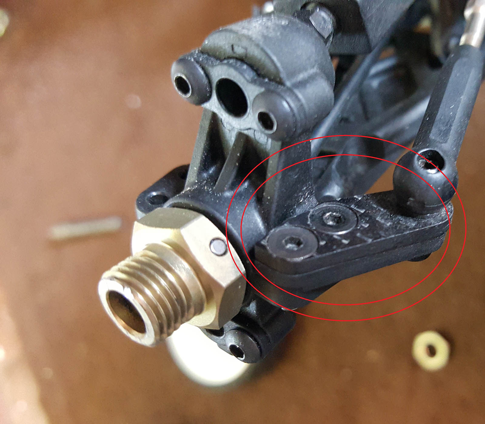 Double up the Carbon Steering Knuckle Plate and the standard Plastic plate from the kit parts.