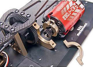 The SWorkz S104 Evo was build to handle lots of speed, and I used a Tekin RSX speed control and Gen3 6.5-turn sensored brushless motor to get it there. The motor was shipped with 20 degrees of timing set on the end bell, and it easily helped the heavy S104 achieve warp speed on the track. The gearing I installed gave a perfect mix of low-end torque off the line with exceptional fast speeds on the straights. The motor can is vented more than most, which reduces its weight and provides a lot of airflow to keep it cool. |