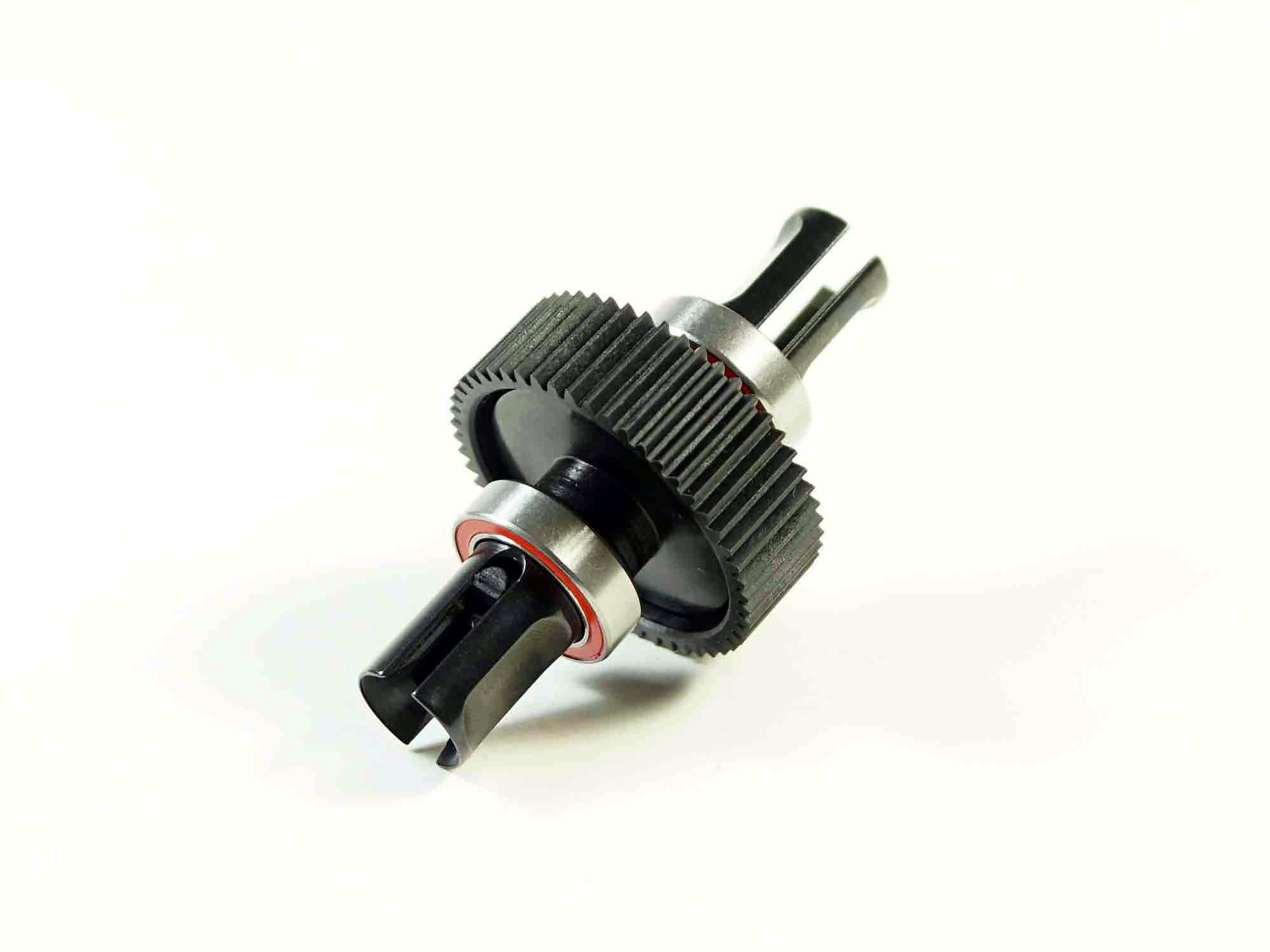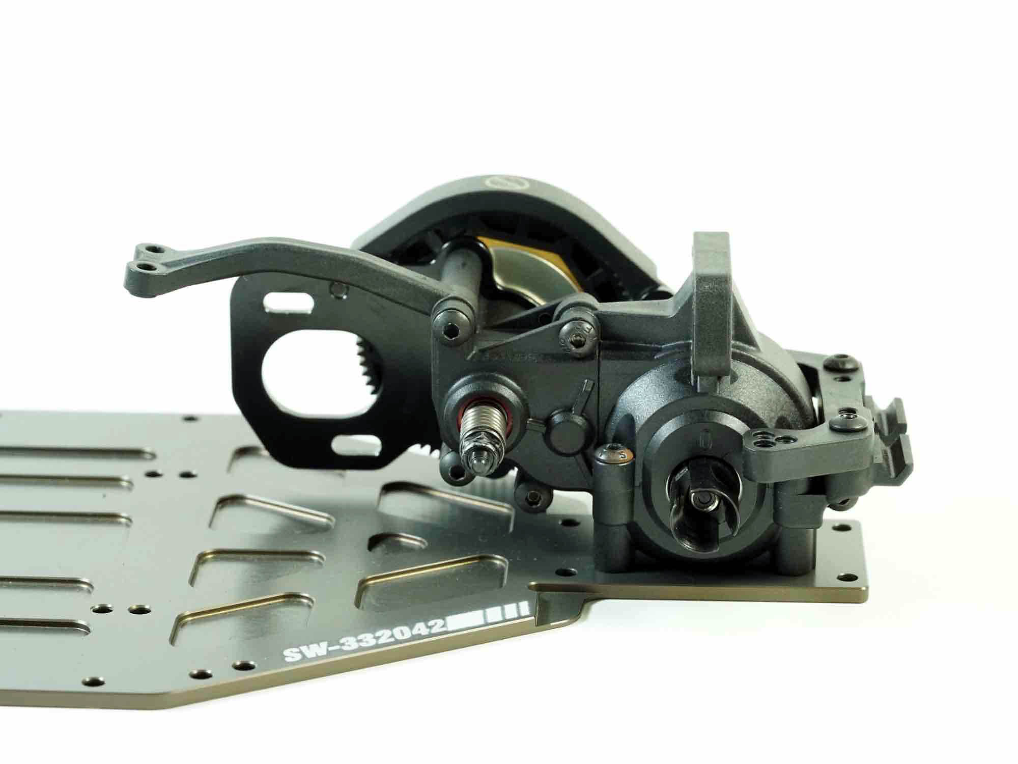 The kit is equipped with a quick release system for the ball differential, which can be mounted in 3 different positions. The rear lower arms are angled and the rear shock tower of the S12-2D has got different height positions. The weight of the gearbox is optimized with a perfect relation between size and strength. The rear width of the S12-2D can be changed through rear hubs and rear CVD modularity.