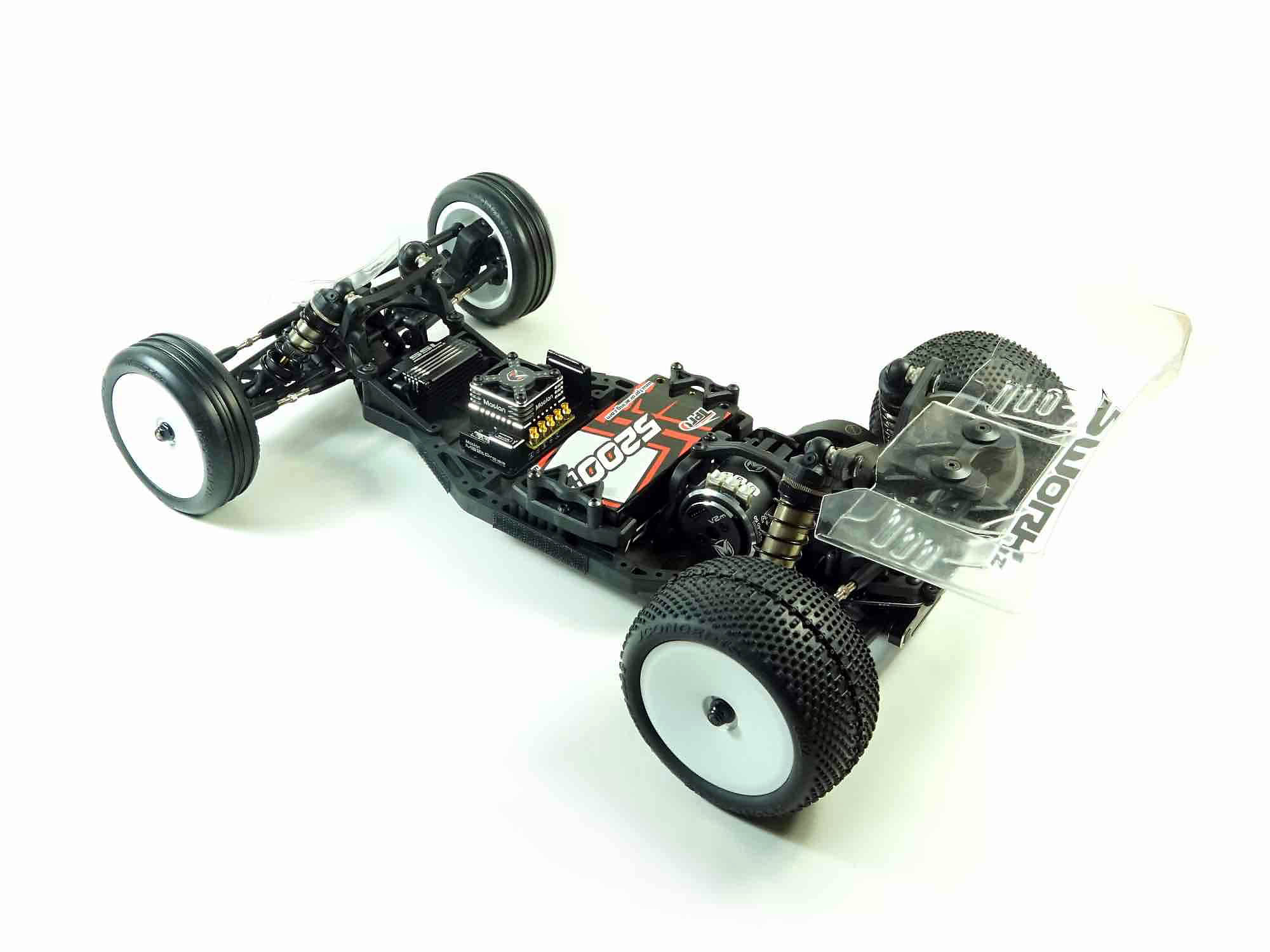 The S12-2D features a new dirt version gear box system, fitted on a new T7075 hard anodized and lightened aluminum chassis, with a new layout that allows up to 6 different battery positions. The flex of the chassis can be changed by adjusting the sideguards.
