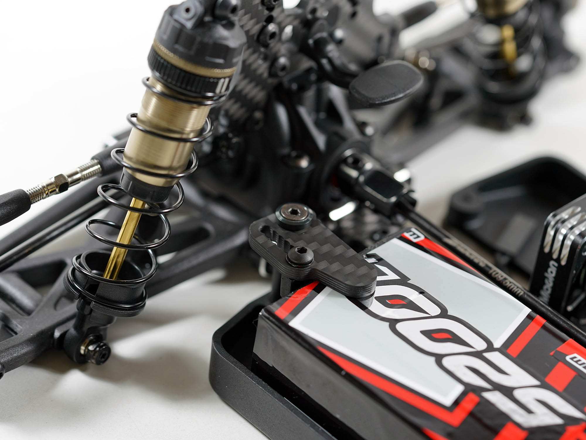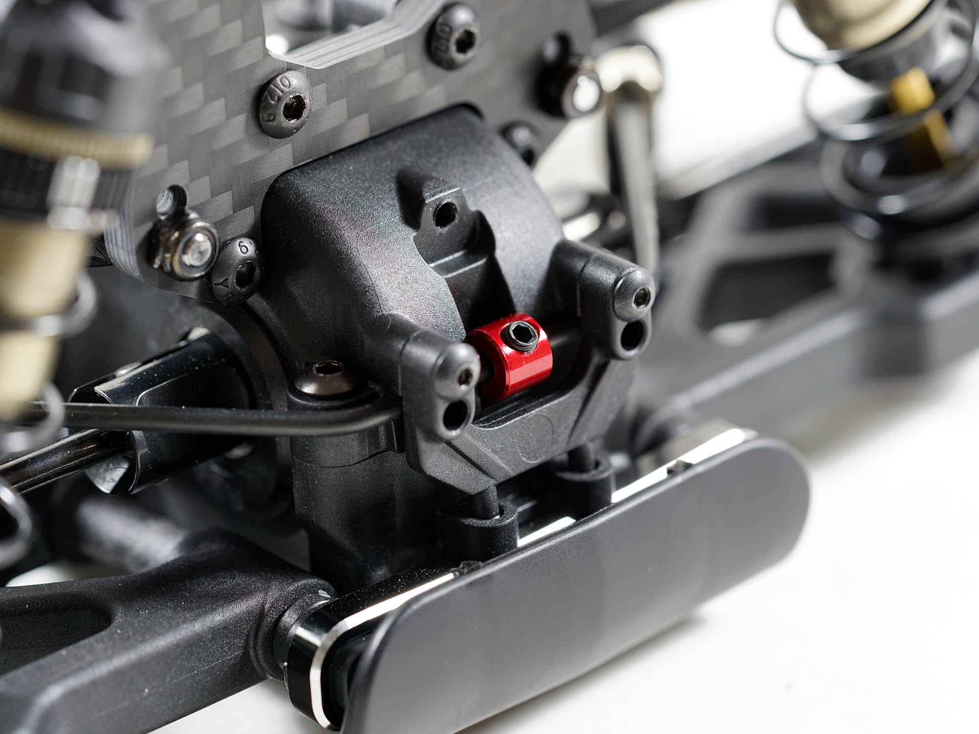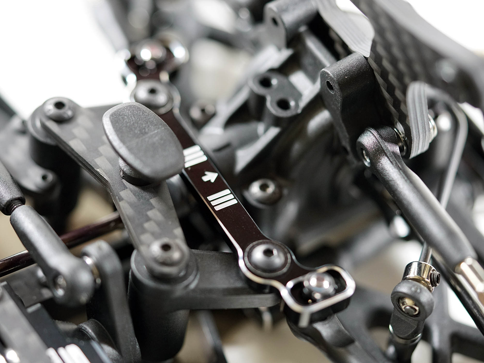 The wing mount holder’s height and angle can be adjusted. The rear width of the S14-4C can be changed with the new Synthesis Rear Hub System and rear CVD modularity.