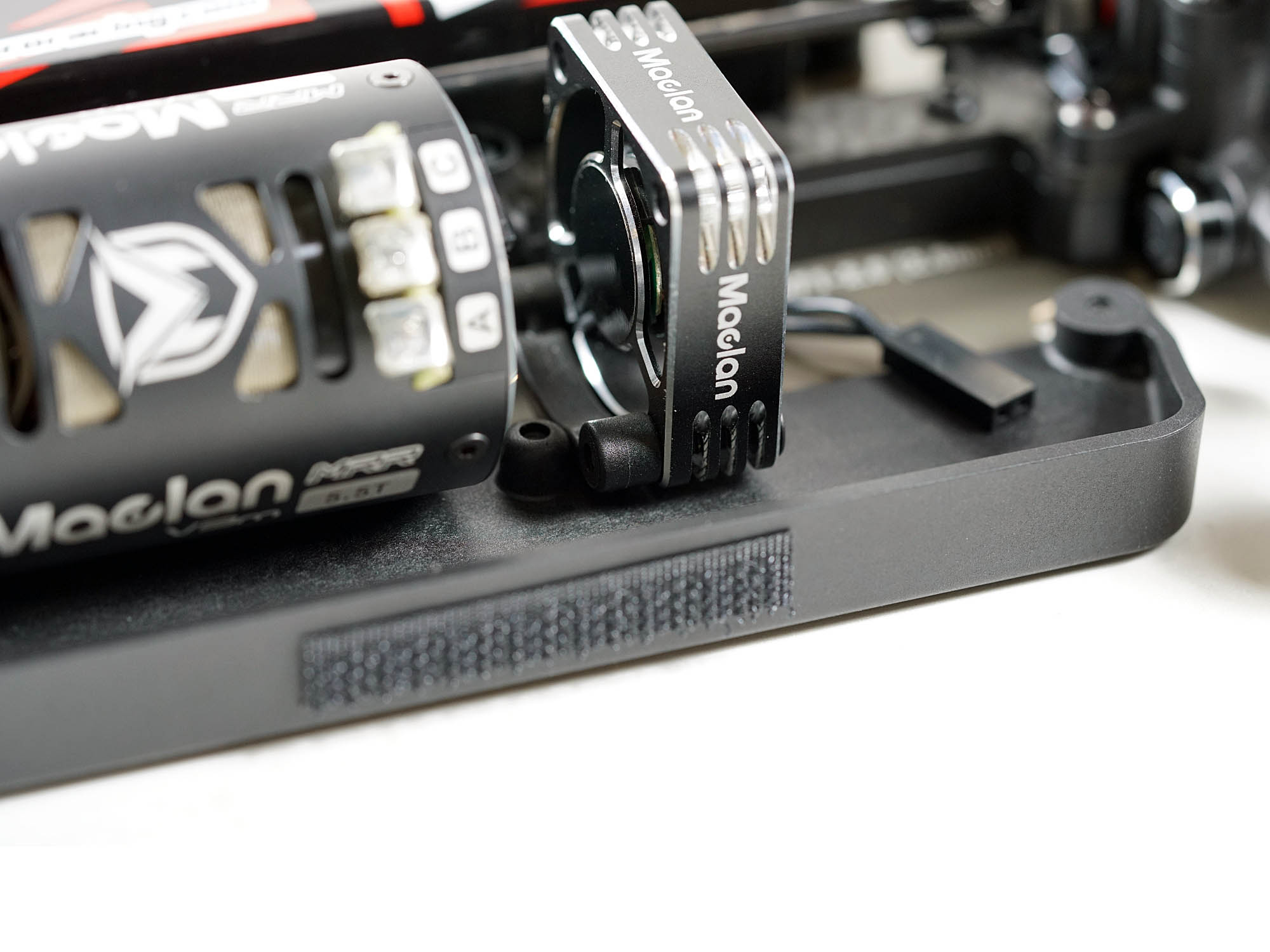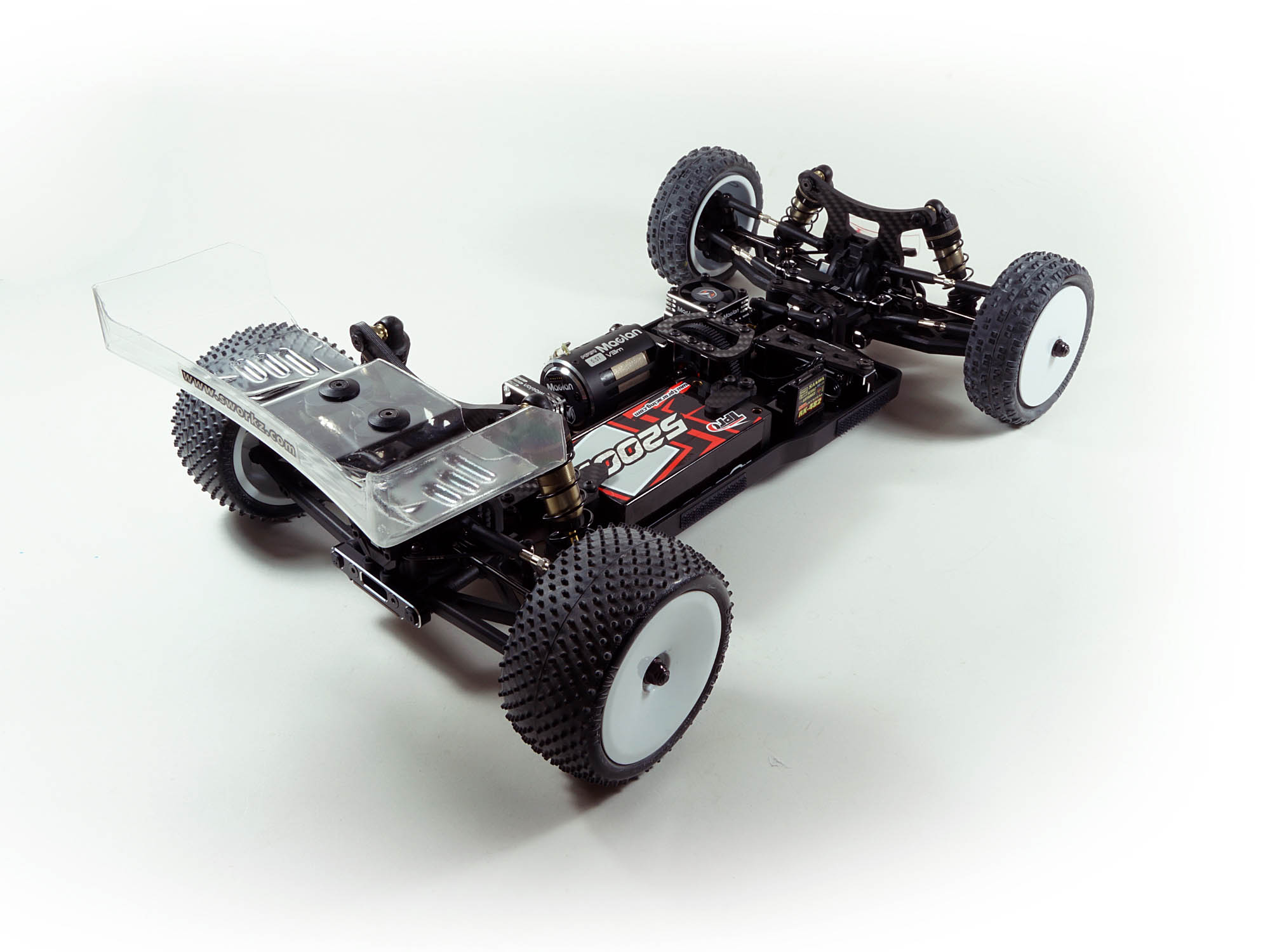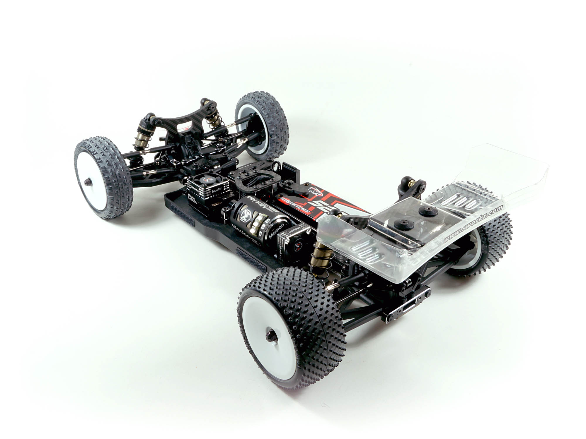 The S14-4C features the new gear box with adjustable diff. system on a T7075 hard anodized and lightened aluminum chassis. The flex of the chassis can be changed by different material sideguards.