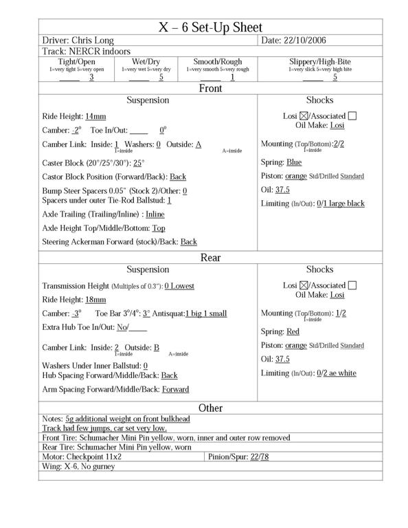 Chris Long's X-6 Teeside Setup from 10-22-06